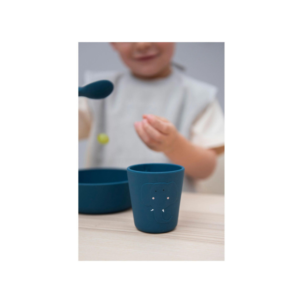 Een leuk en kleurrijk duo van bekers. Op elke beker staat onze dierenvriend die niet kan wachten om een maaltijd met je kleintje te delen. Het formaat is perfect voor kleine handjes. De bekers zijn goed stapelbaar zodat je ze compact kan opbergen. Silicone is een geweldig materiaal om te gebruiken in de keukenomgeving. Het breekt niet en is veilig te gebruiken in de magnetron, vaatwasser, vriezer en oven. Zelfs bij intensief gebruik blijft het servies goed in vorm en kan het gemakkelijk worden doorgegeven aan kleine broertjes, zusjes of vrienden. De 100% food grade silicone voldoet aan alle Europese veiligheidsnormen.