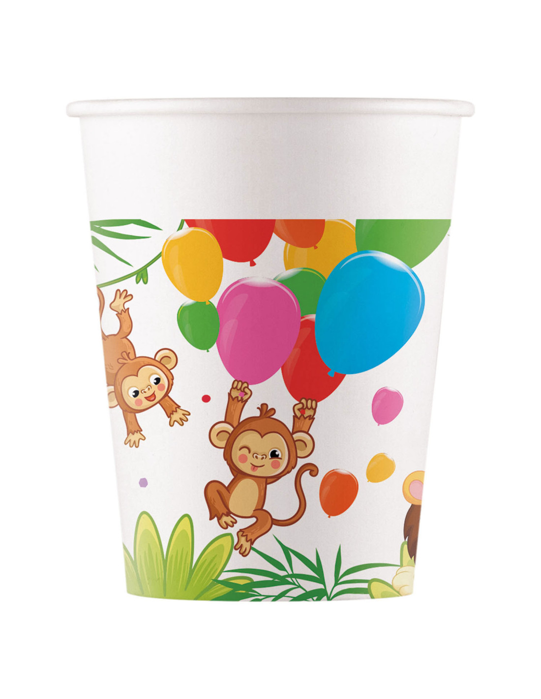 8 stuks papieren bekers met Jungle Ballonnen-print, inhoud 200ml.