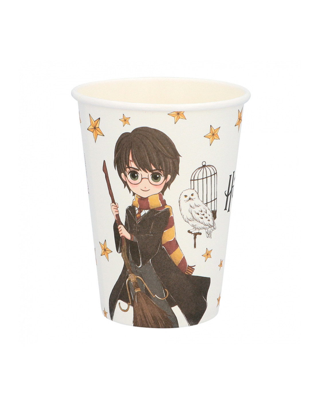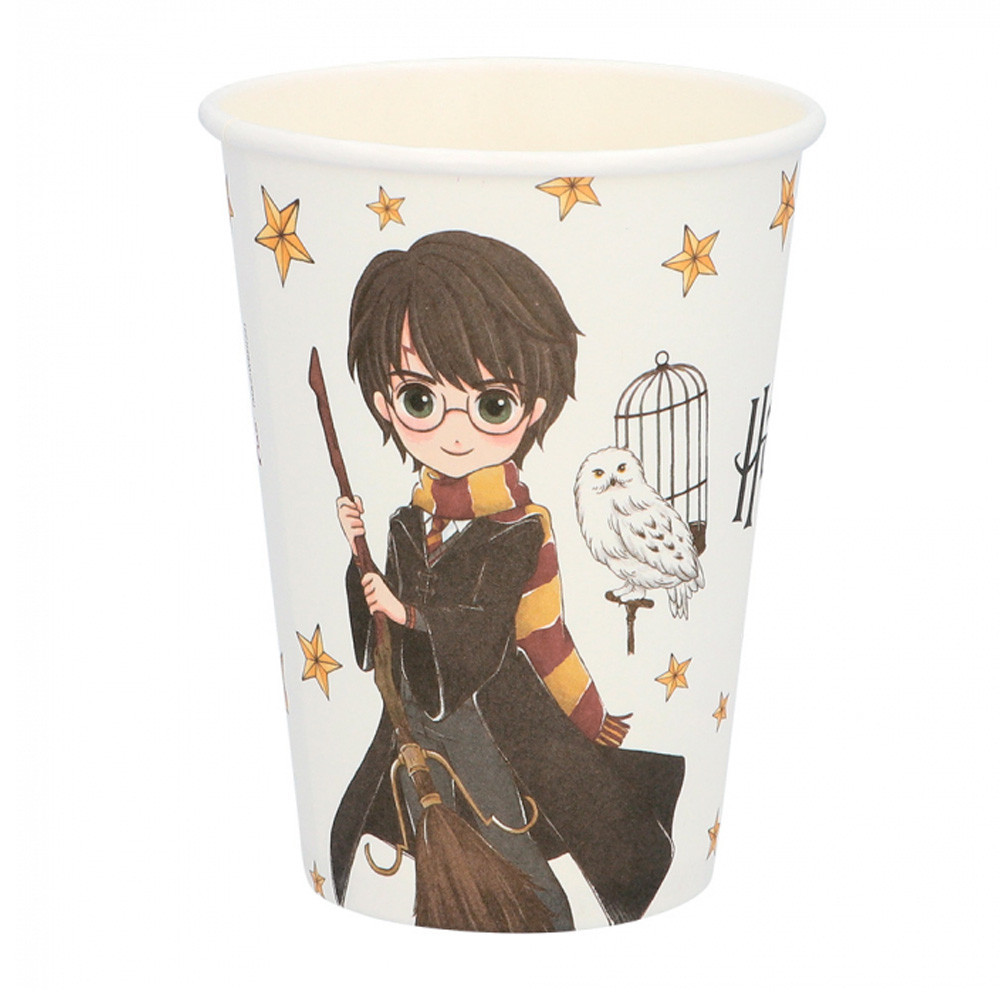 Maak je Harry Potter-feest compleet met deze betoverende papieren bekertjes! Dit pakket bevat 8 stuks papieren bekertjes, elk versierd met iconische symbolen en afbeeldingen uit de Harry Potter-wereld.