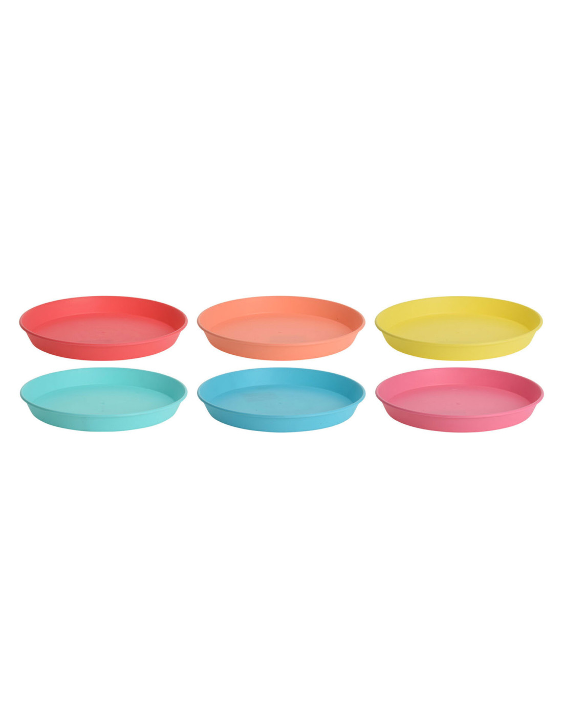 Set met 6 gekleurde borden van kunststof. Ideaal voor tijdens een picknick of lunch in de tuin. Lichtgewicht, dus makkelijk mee te nemen!