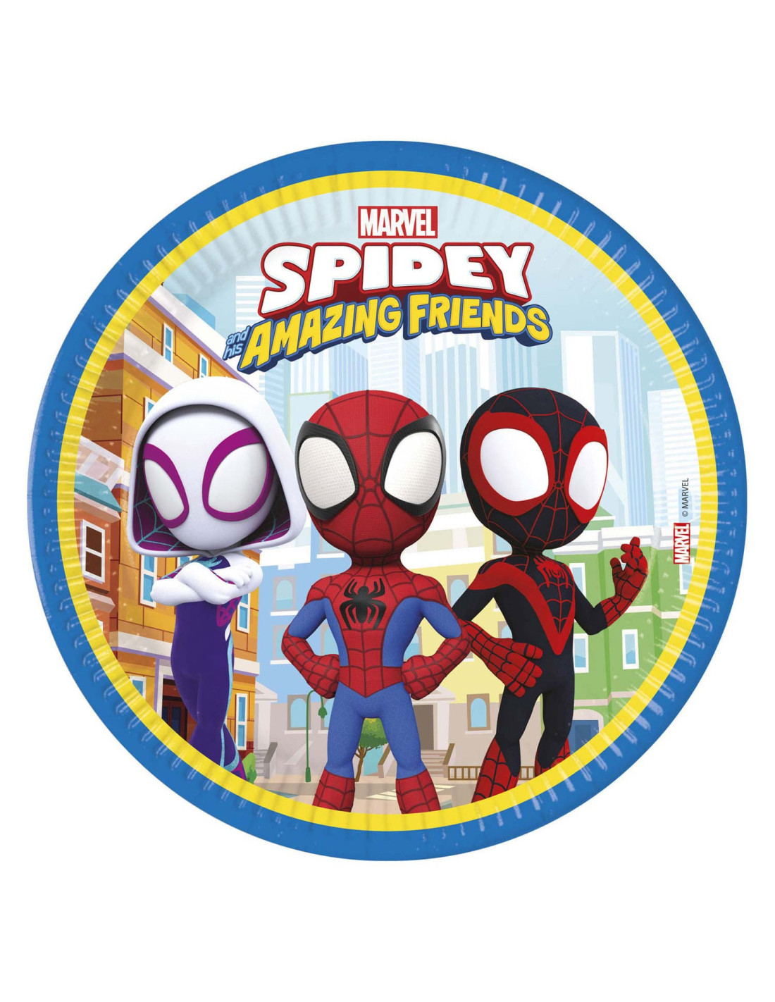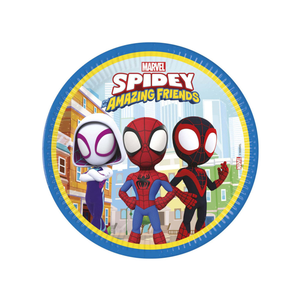 8 stuks papieren borden met afbeelding van Spidey en zijn Amazing Friends, doorsnede 23 cm.