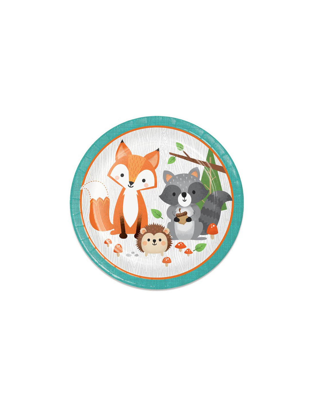 Kartonnen bordjes in thema Wild One (bosdieren). De bordjes hebben een doorsnee van 23 cm en zitten per 8 stuks verpakt.