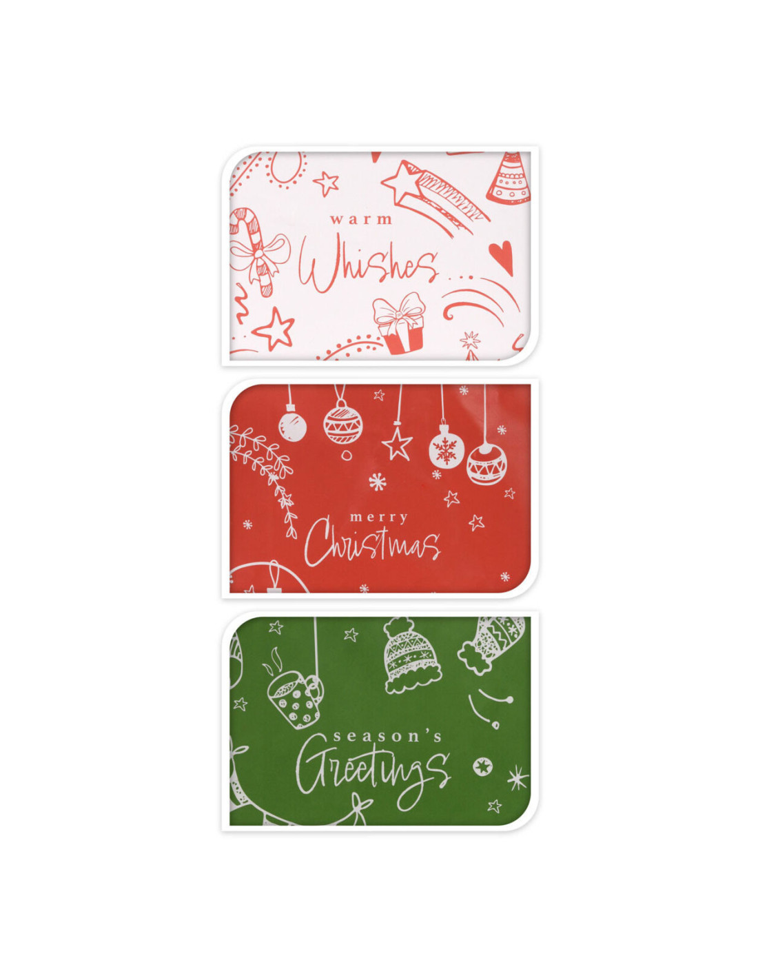 Set van 24 vrolijke geschenktasjes in kerstthema. Verkrijgbaar in groen, rood en wit. De geschenktasjes zijn 16 centimeter groot en hebben een sluitkoord bovenaan.