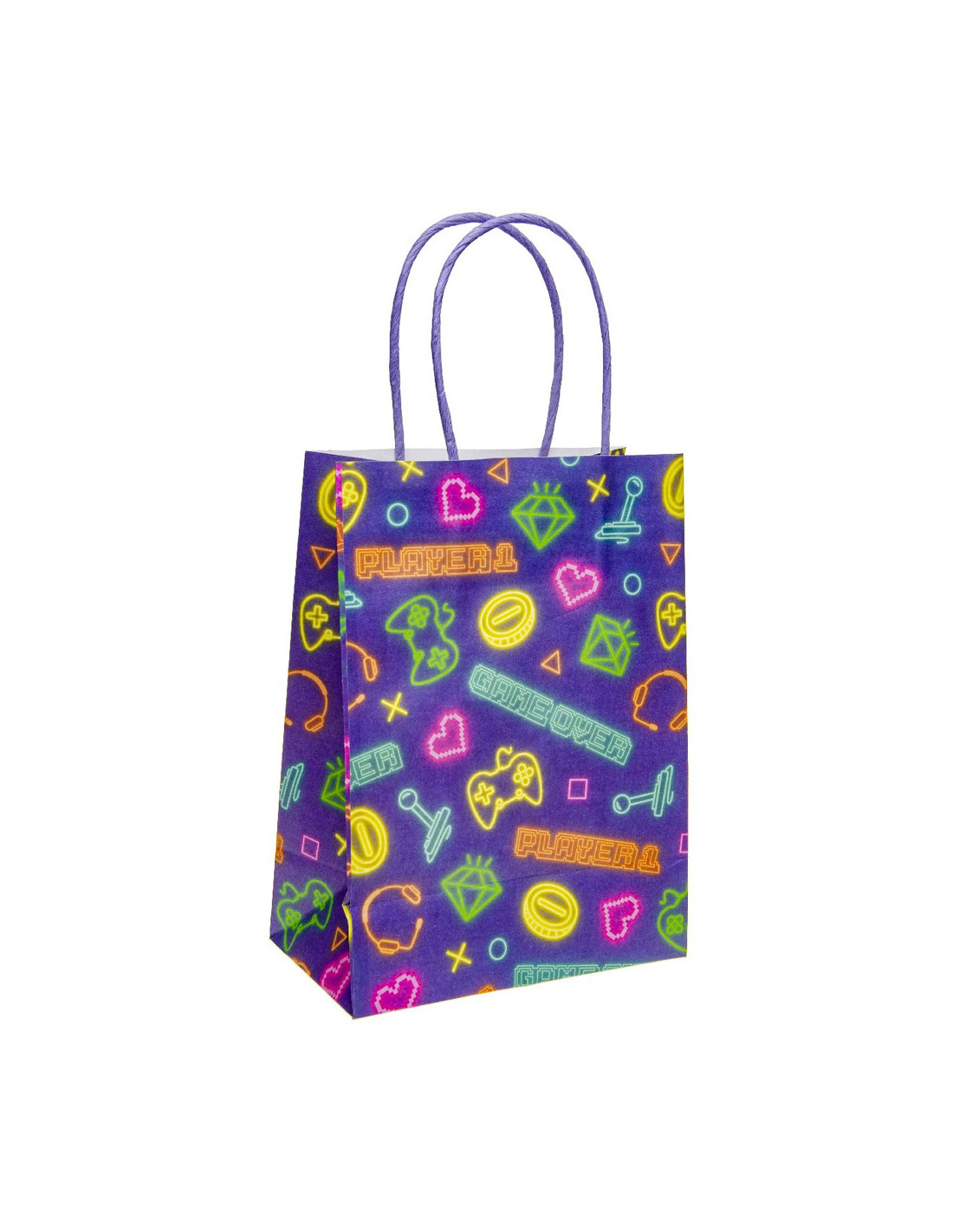 Een geschenktasje Gamer van papier met afmetingen van 16x22x9cm is ideaal voor het verpakken van kleine cadeaus. Het tasje is compact en gemakkelijk mee te nemen, en biedt voldoende ruimte voor items zoals cadeautjes of bijvoorbeeld kleine speeltjes. Het papieren materiaal geeft een milieuvriendelijke uitstraling en kan worden gerecycled, wat bijdraagt aan een duurzamere wereld.