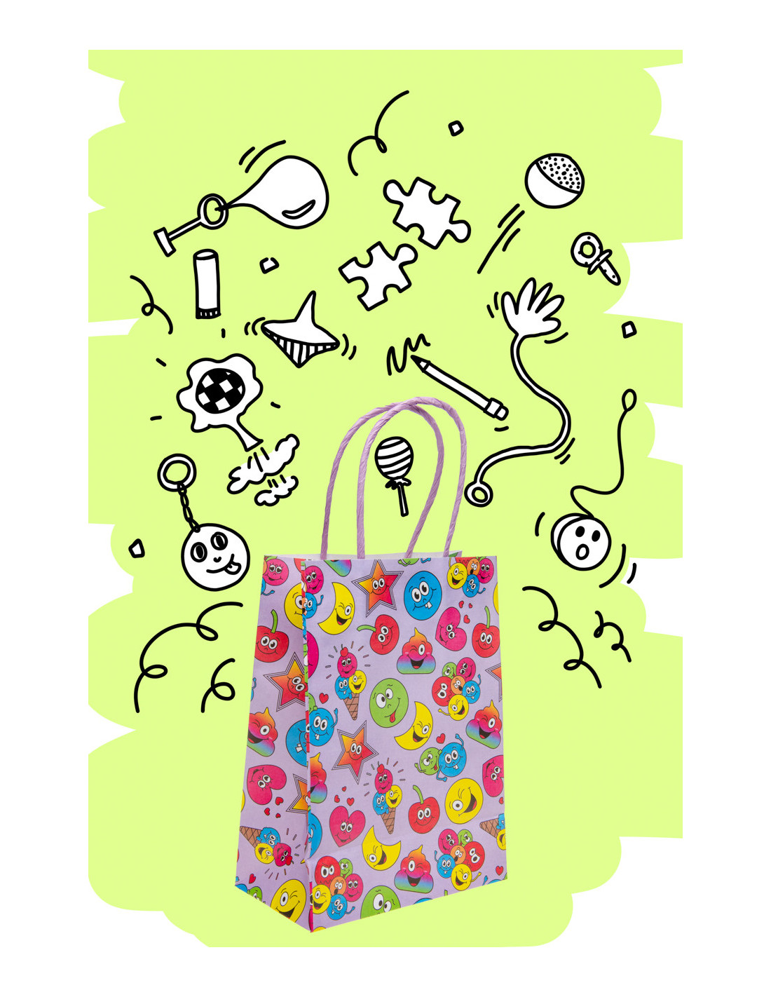 Met een lachgezicht op de tasjes, voeg je een extra dosis vreugde toe aan het cadeau-geefmoment. Maak iemand blij met een klein gebaar en laat zien dat je om hen geeft, zelfs tot aan de verpakking toe!