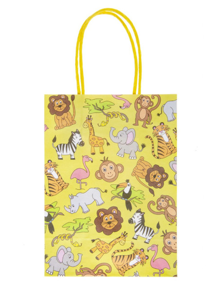 12 geschenktasjes Wilde dieren van papier met afmetingen van 16x22x9cm is ideaal voor het verpakken van kleine cadeaus. Het tasje is compact en gemakkelijk mee te nemen, en biedt voldoende ruimte voor items zoals cadeautjes of bijvoorbeeld kleine speeltjes. Het papieren materiaal geeft een milieuvriendelijke uitstraling en kan worden gerecycled, wat bijdraagt aan een duurzamere wereld.