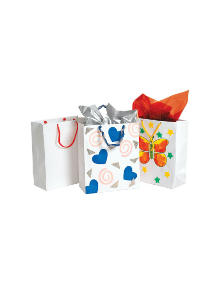 Colorations Knutseltasjes zijn de perfecte oplossing voor je volgende knutselproject. Je krijgt een set van 24 witte knutseltassen met nylon hengsels. Je krijgt 6 elk met kleurhandvat, rood, blauw, geel en groen. Deze blanco witte tassen zijn klaar om te versieren! Gebruik verschillende voorwerpen om mee te decoreren, zoals verf, kleurpotloden, kleurpotloden, stickers of stiften. Onze knutseltassen hebben een grote opening waardoor je er gemakkelijk snoepjes, lekkernijen of cadeaus in kunt doen. De gekleurde handvatten zijn er in rood, blauw, geel en groen. Ideaal voor verjaardagen, Kerstmis, Moederdag, Vaderdag, Valentijnsdag of een leuk knutselproject op elk moment van het jaar. Alle producten van het merk Colorations zijn niet giftig en veilig voor kinderen.