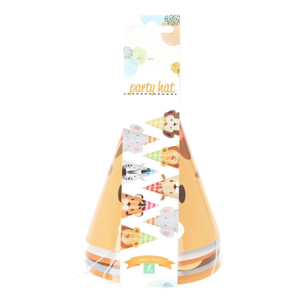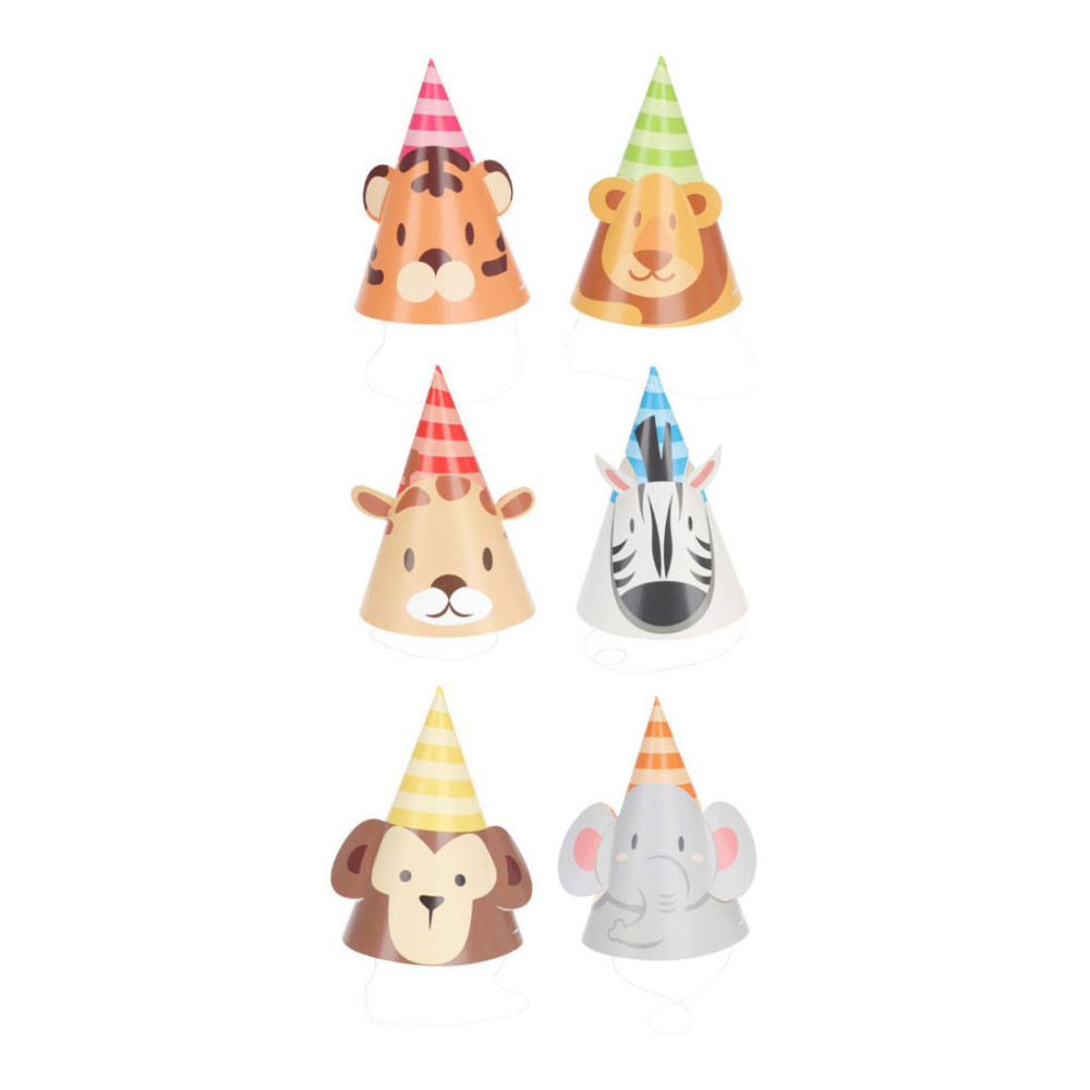 Feesthoedje Jungledieren met Oren, 6st. Gemaakt van papier.