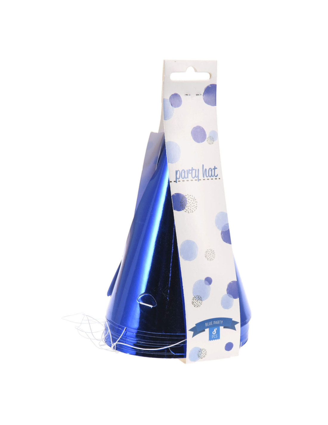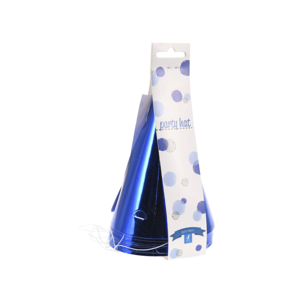 Papieren Feesthoedjes Metallic Blauw, 8st.