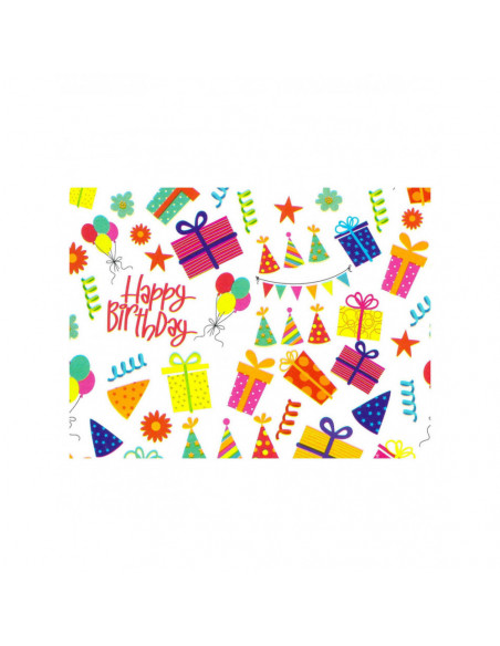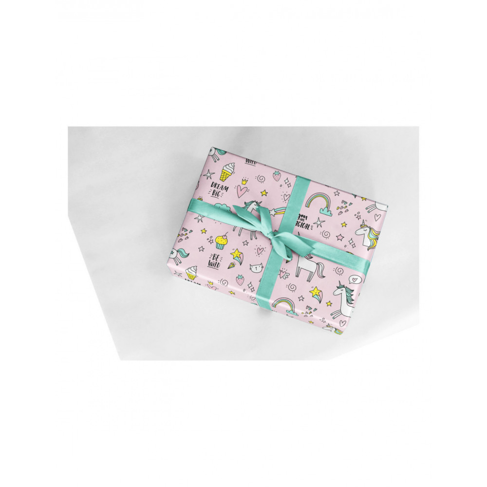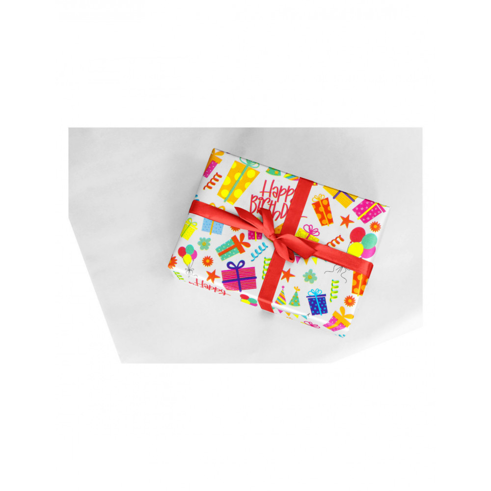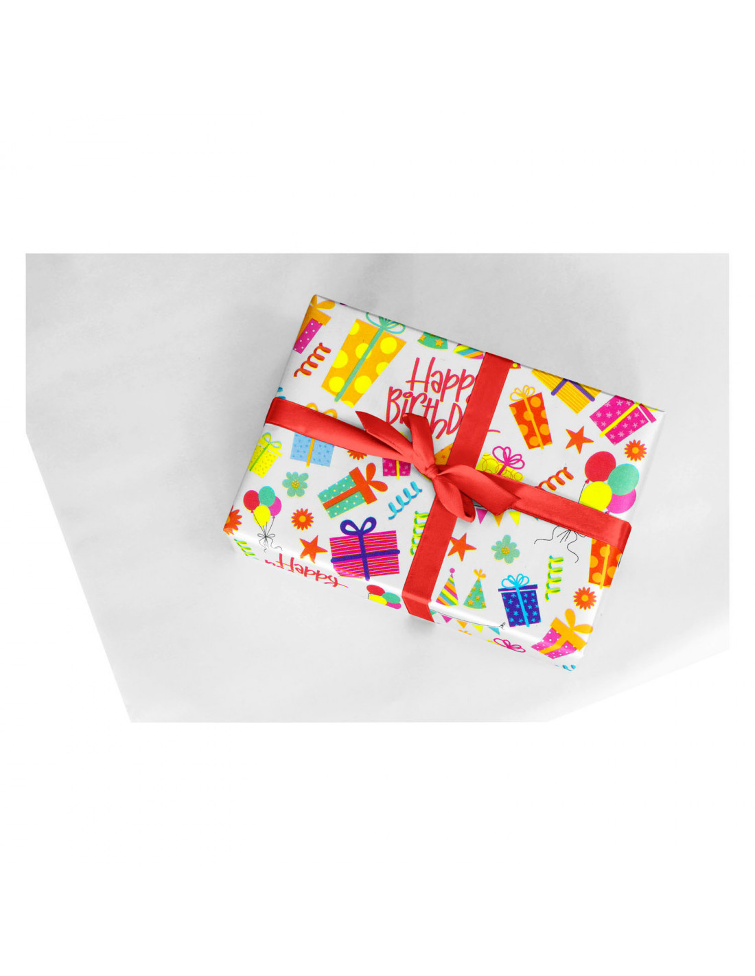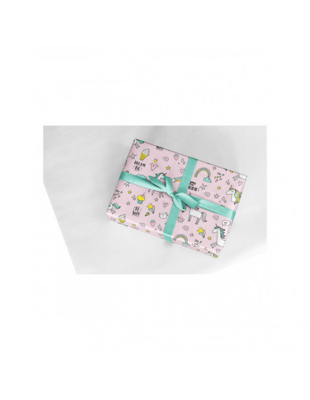 Display doos met 50 rollen inpakpapier in verschillende dessins en kinderprints. Formaat van 1 rol is 70 cm x 2 meter.