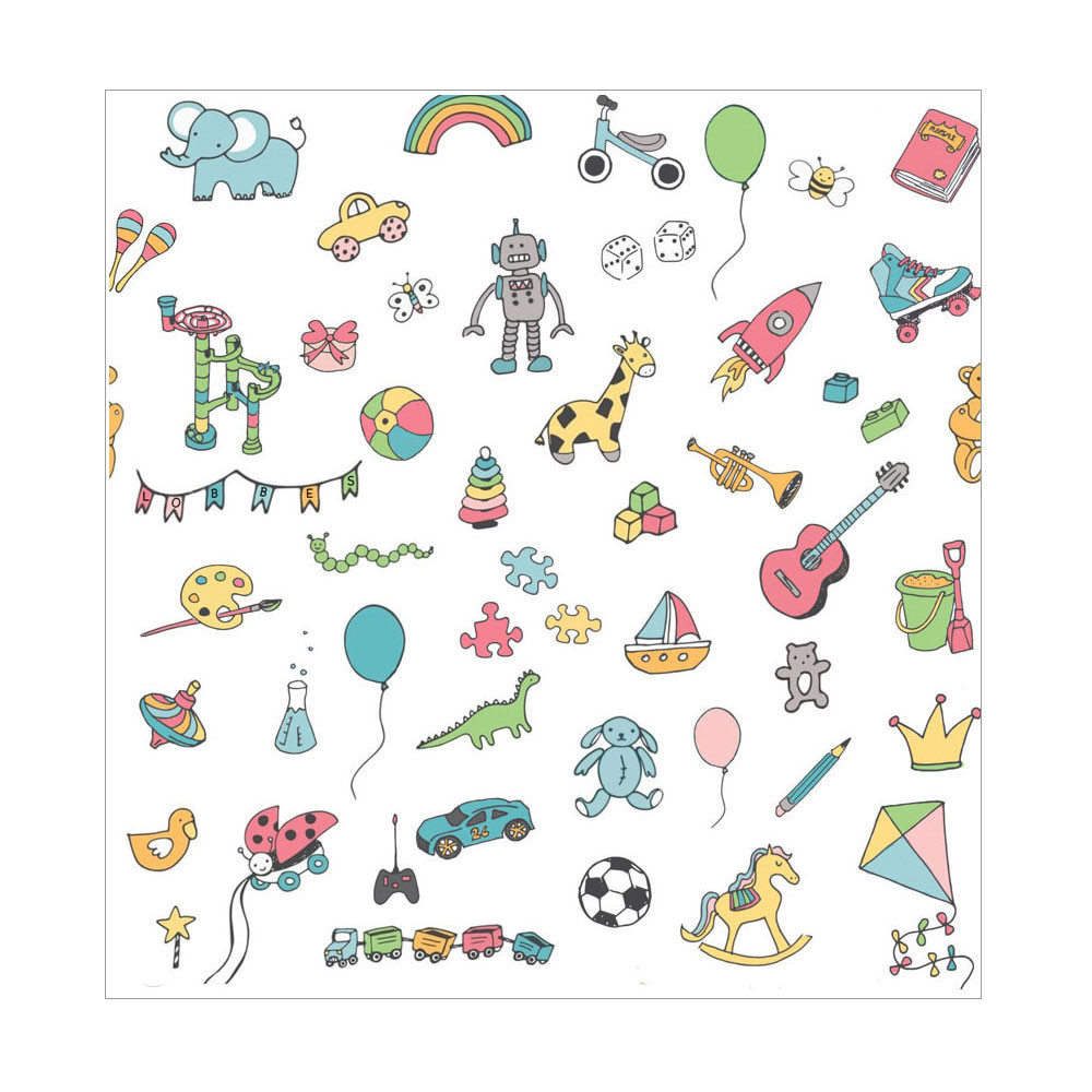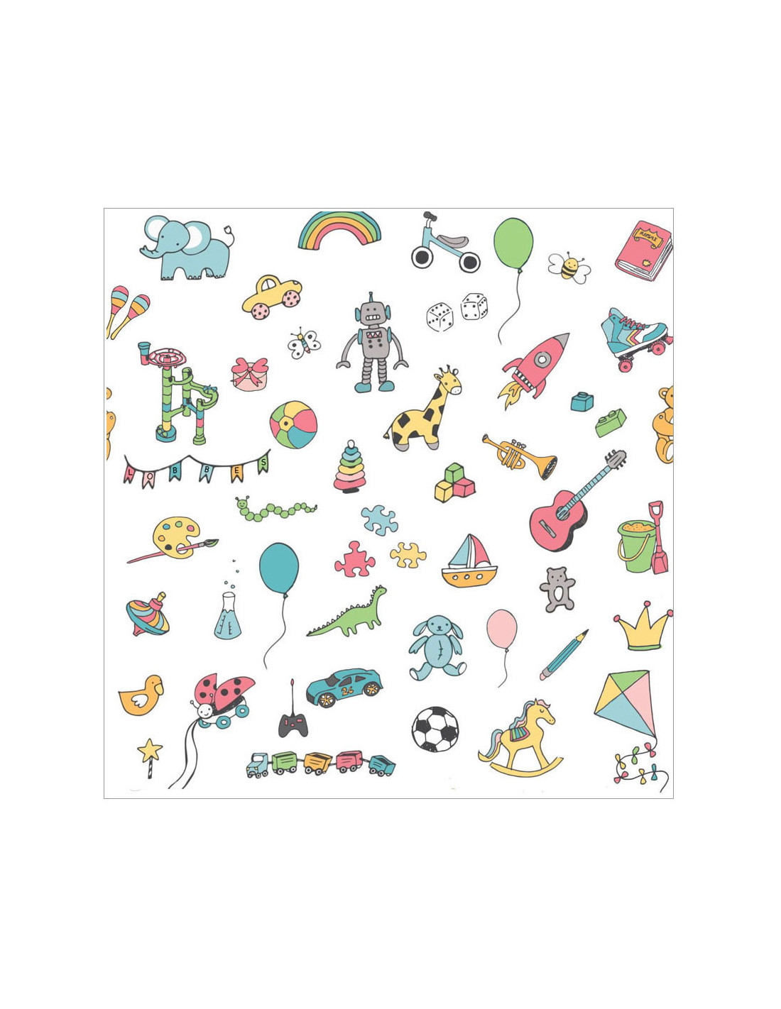 Inpakpapier met speelgoed print. Afmeting 300 x 50 centimeter.