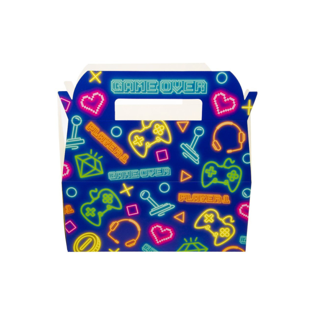 Wil je jouw feestje een extra speelse touch geven? Dan is deze vrolijke bundel van 240 menuboxen in het Game thema precies wat je zoekt! Deze menuboxen zijn perfect om al je favoriete snacks en lekkernijen in te bewaren, of het nu gaat om popcorn, chocola of andere feestelijke traktaties. Met deze opvallende en kleurrijke menuboxen wordt jouw feestje helemaal compleet.
