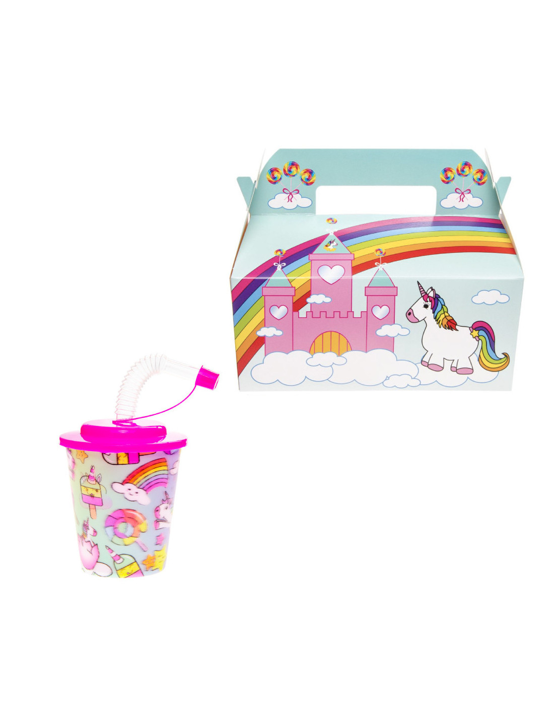 Laat je betoveren door de magie van de Eenhoorn met onze betoverende Eenhoorn Menubox bundel, inclusief een kartonnen Menubox en een sprookjesachtige beker met rietje! Deze bundel is perfect geschikt voor een betoverend kinderfeest met een Eenhoorn thema, waar dromen werkelijkheid worden en avonturen wachten achter elke regenboog.