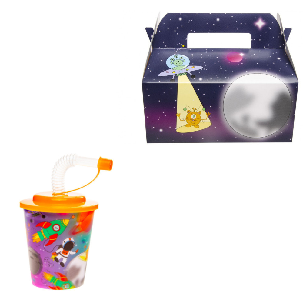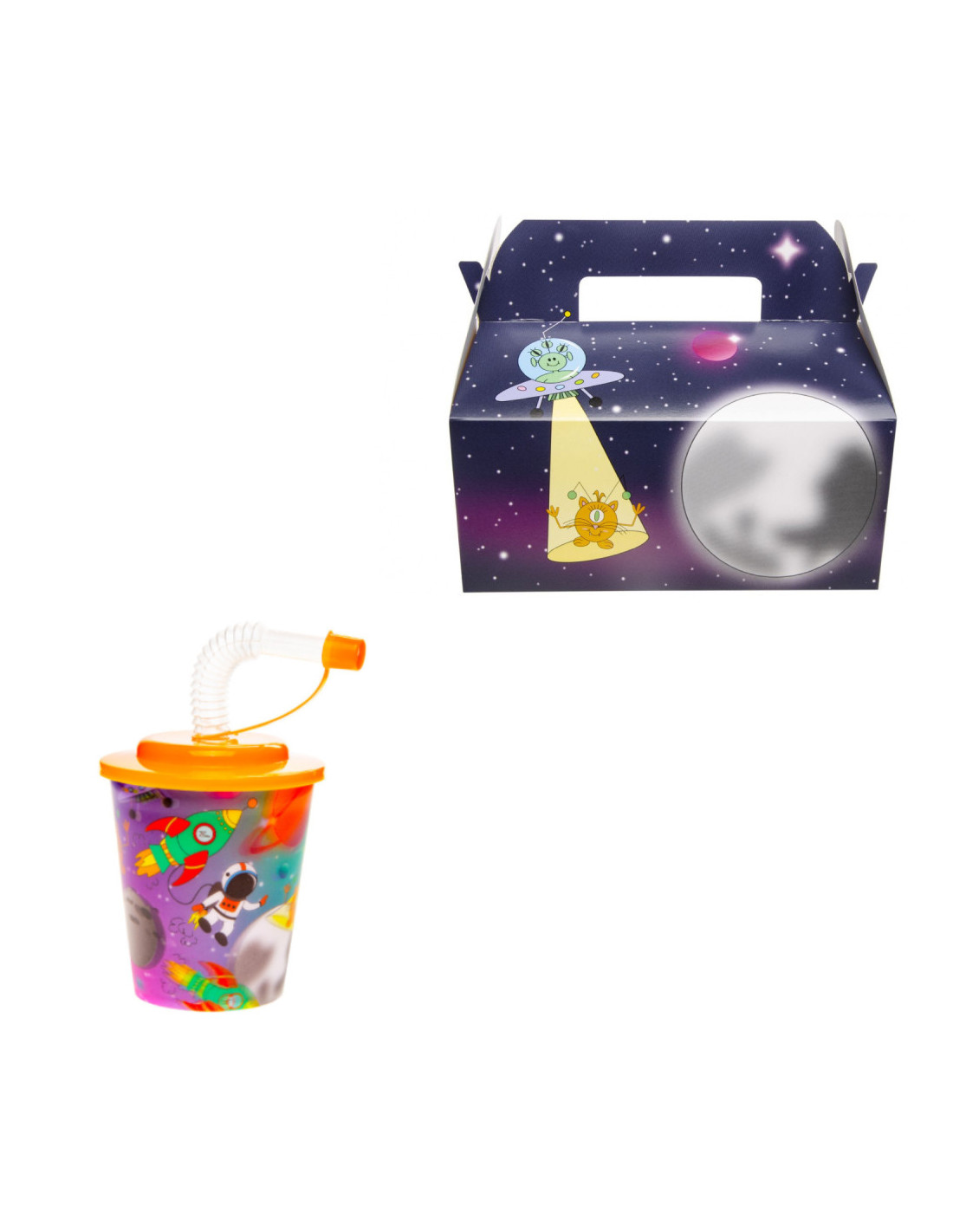 Stap in de buitengewone wereld van de ruimtevaart met onze avontuurlijke Ruimtevaart Menubox bundel, compleet met een kartonnen Menubox en een ruimtevaart-thema beker met rietje! Deze bundel is de perfecte keuze voor een spannend kinderfeest met een ruimtevaart-thema en biedt duurzaamheid en functionaliteit om ervoor te zorgen dat jouw feest vlekkeloos verloopt.