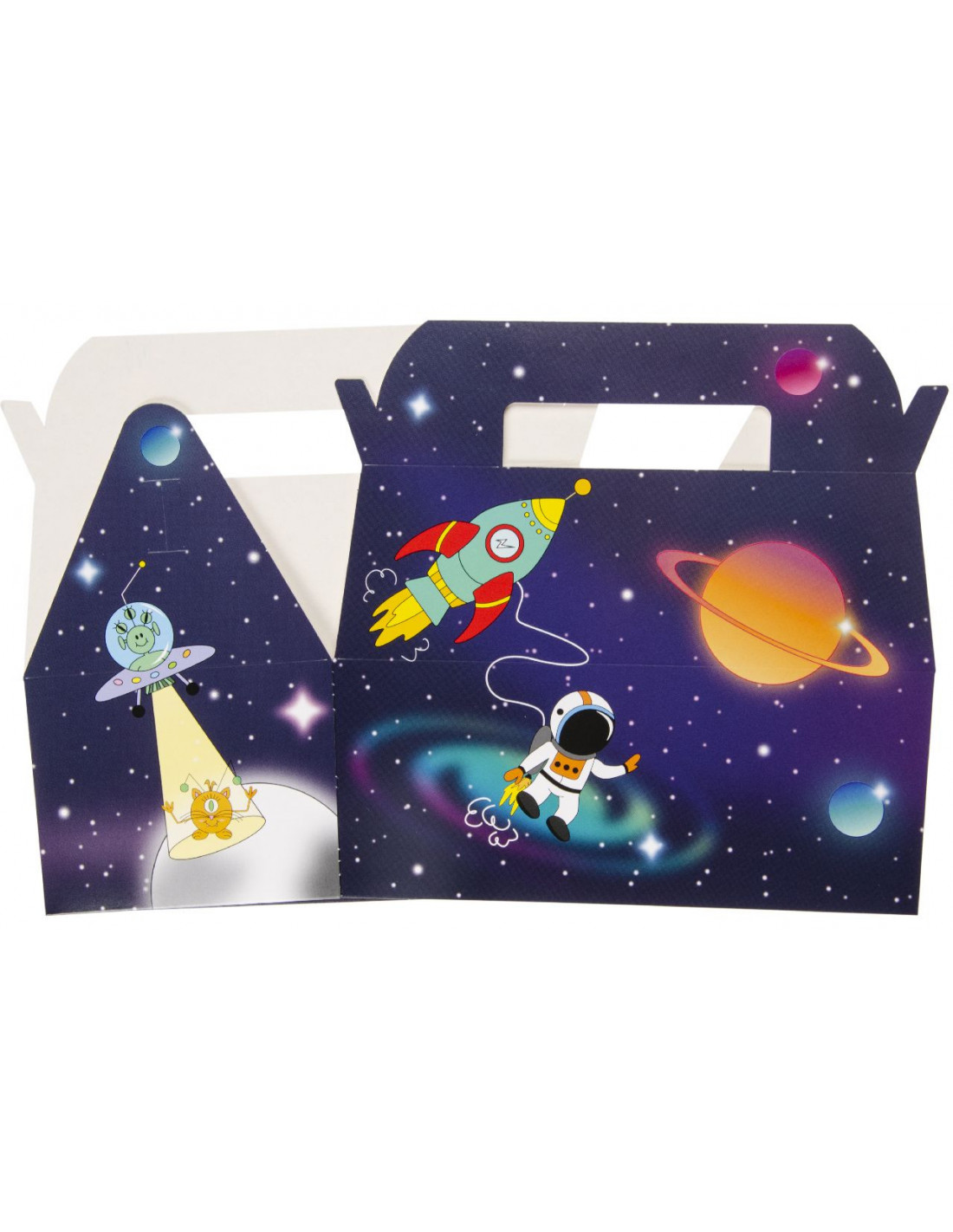 De menubox is ontworpen met een kleurrijk en speels ruimtemotief dat de feestelijke sfeer direct verhoogt. Het biedt voldoende ruimte om al je favoriete snacks en lekkernijen in op te bergen, van popcorn en chips tot chocolade en snoepjes. Met deze menubox heb je alles wat je nodig hebt om je gasten te verwennen met heerlijke traktaties.