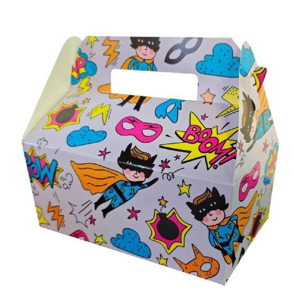 De stevige menubox zorgt ervoor dat jouw snackvoorraad zelfs de meest epische gevechten doorstaat. Deze menubox zit boordevol kleurrijke afbeeldingen van maskers, bliksemschichten en iconische superheldensymbolen. Perfect voor dappere feestvierders en echte helden die klaar zijn om hun krachten te bundelen voor een episch avontuur!