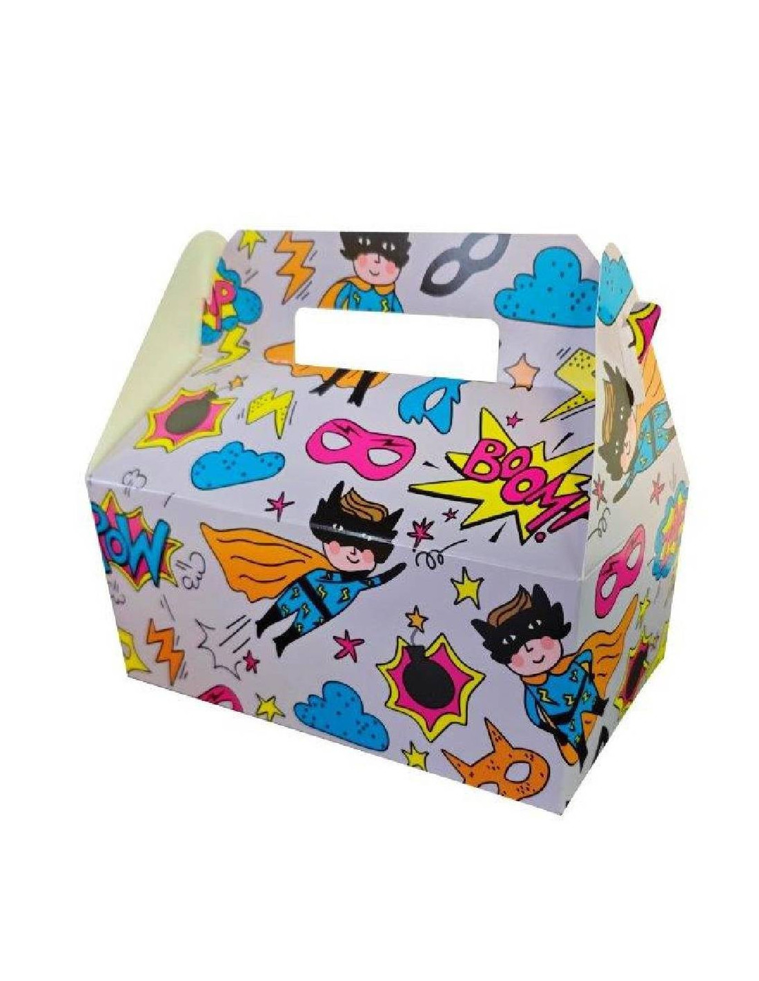 De stevige menubox zorgt ervoor dat jouw snackvoorraad zelfs de meest epische gevechten doorstaat. Deze menubox zit boordevol kleurrijke afbeeldingen van maskers, bliksemschichten en iconische superheldensymbolen. Perfect voor dappere feestvierders en echte helden die klaar zijn om hun krachten te bundelen voor een episch avontuur!
