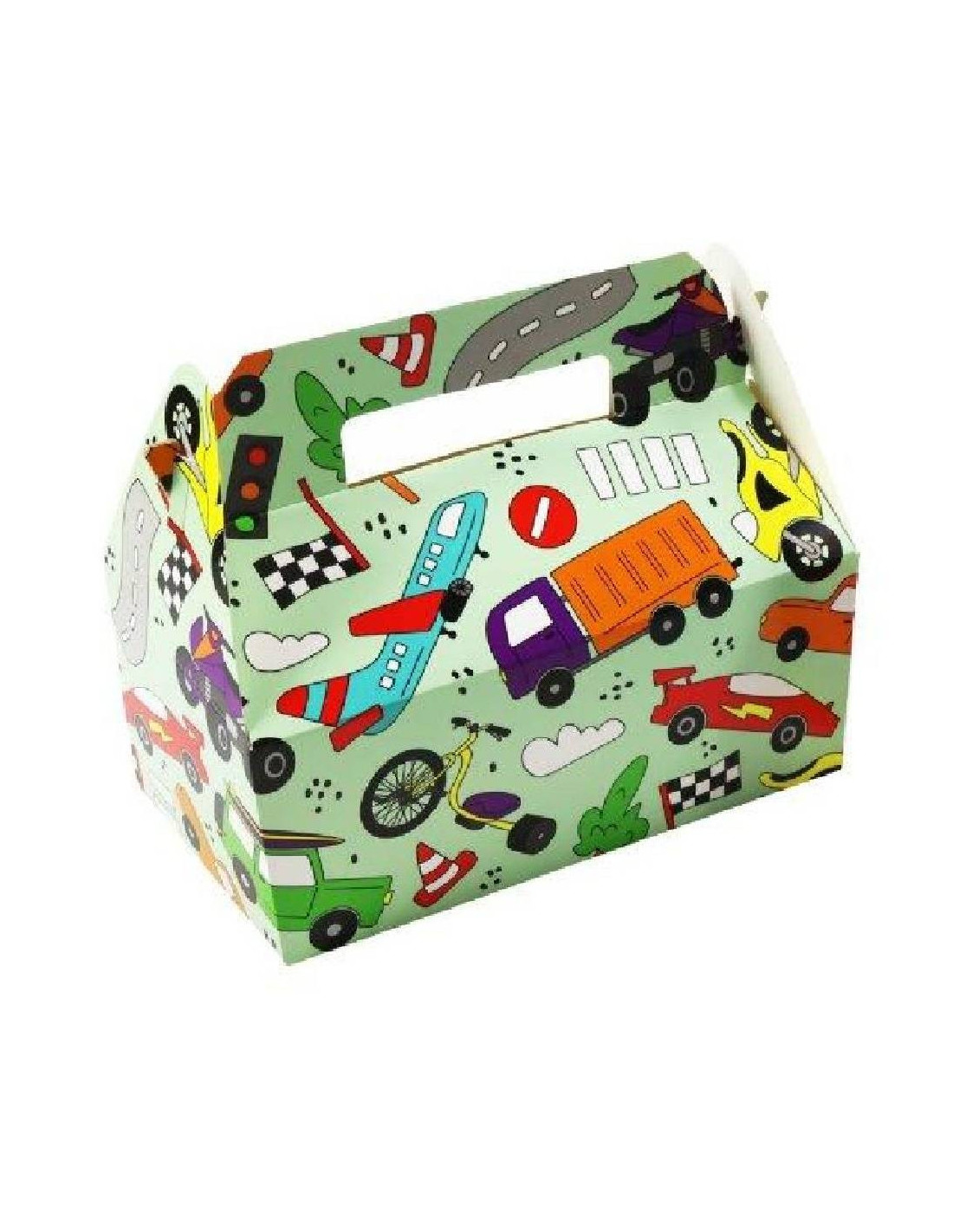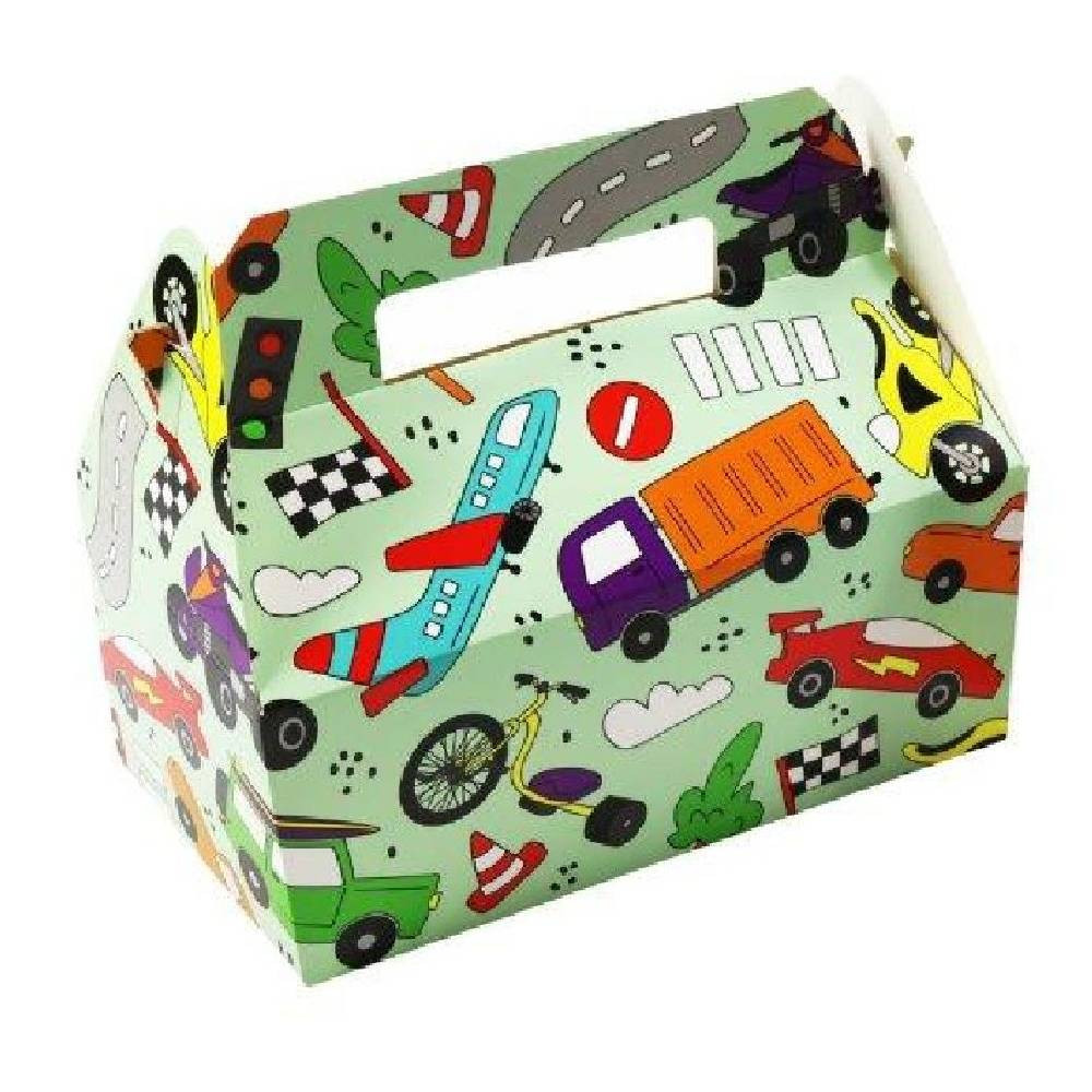 Deze stevige menubox biedt volop ruimte voor al jouw lekkernijen. Van knapperige chips en zoete snoepjes tot een snelle snack voor onderweg, alles past erin. De sterke constructie zorgt ervoor dat jouw versnaperingen veilig en beschermd blijven, zodat je er zonder zorgen van kunt genieten. De menubox is bedrukt met coole voertuigen zoals raceauto’s, vrachtwagens en motoren. De dynamische afbeeldingen en felle kleuren maken hem perfect voor kleine en grote autofans. Ideaal voor een racefeestje of een transportthemafeest.