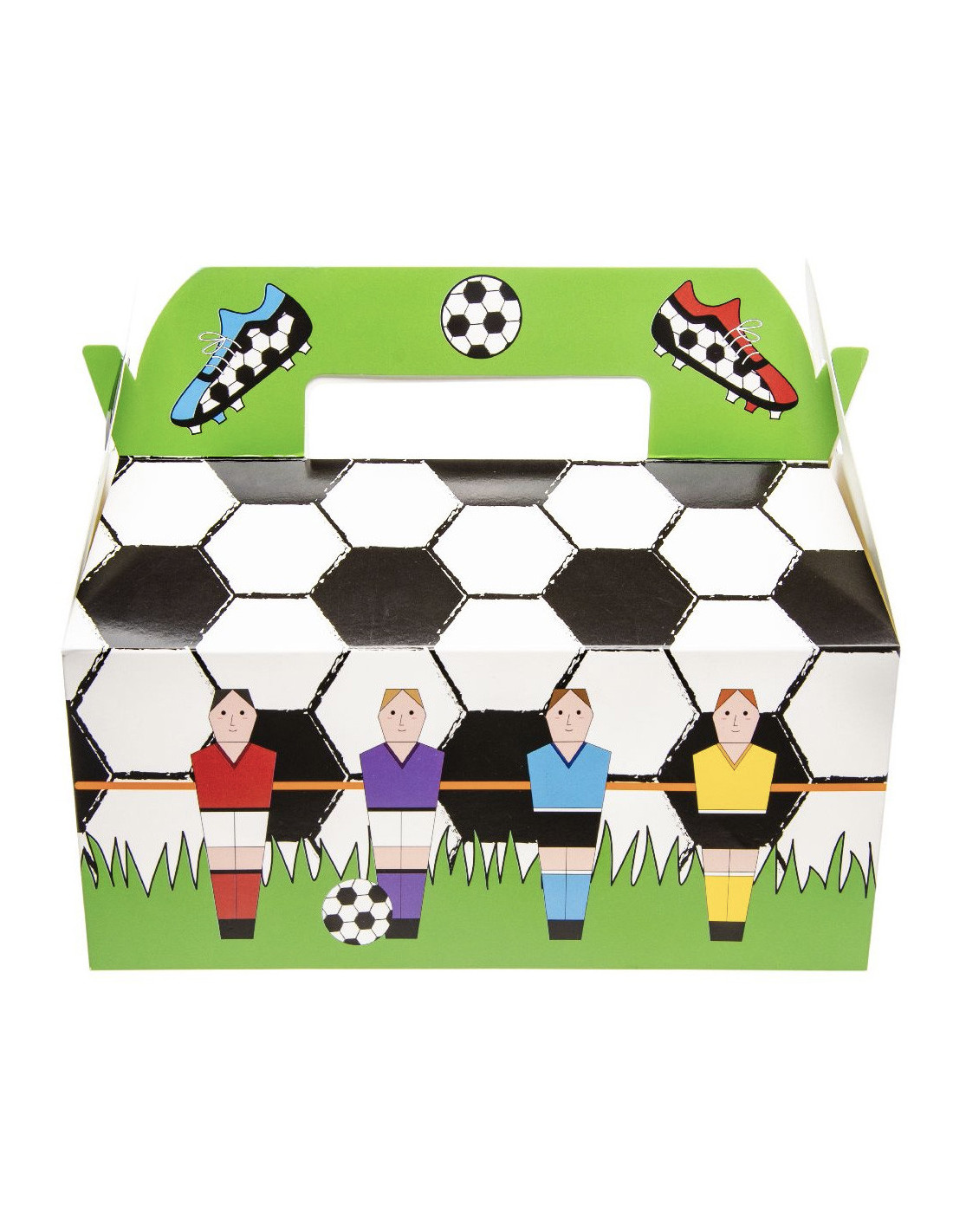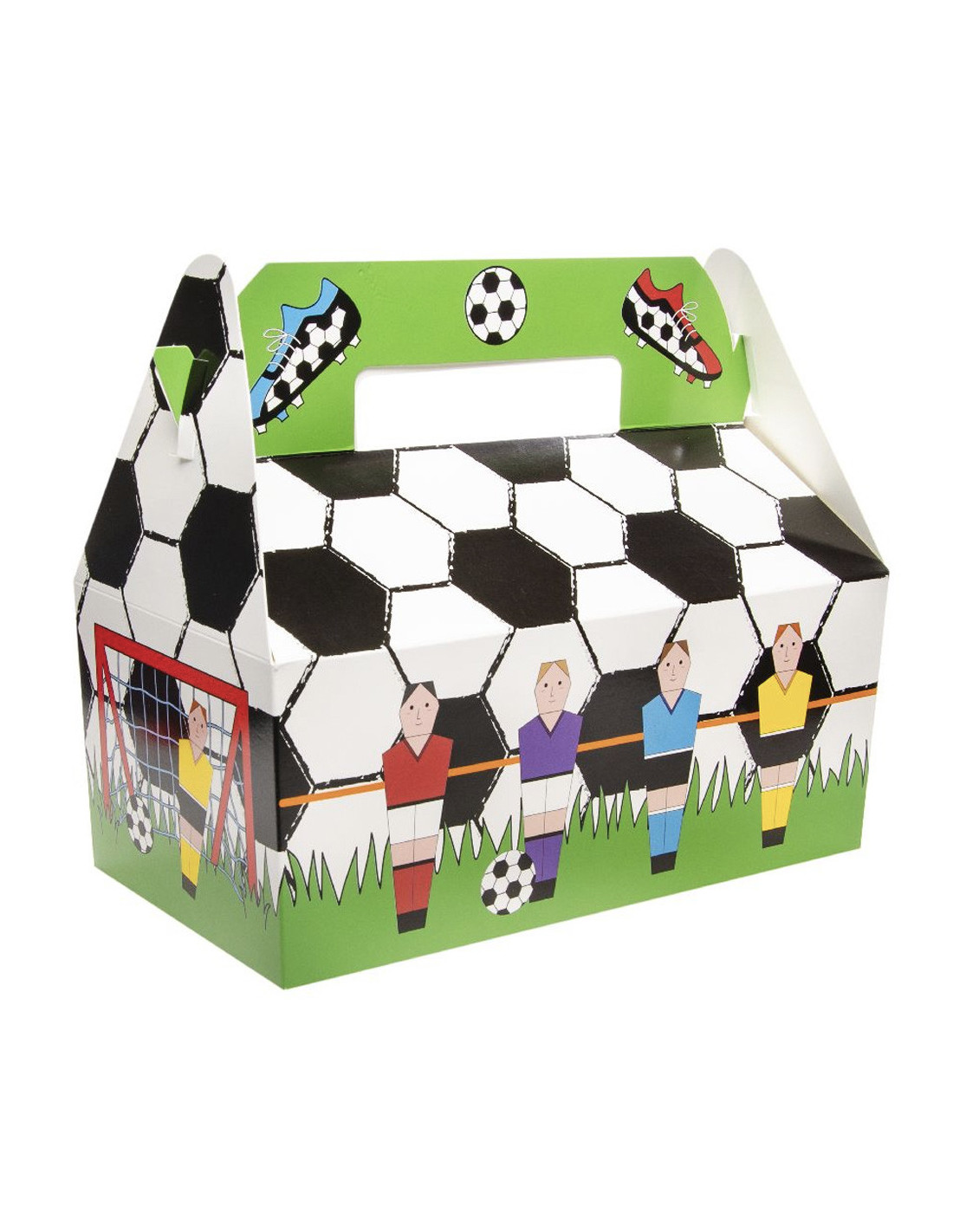 De menuboxen zijn gemaakt van stevig karton en hebben een opvallend voetbaldesign. Ze zijn niet alleen praktisch, maar ook nog eens een leuke toevoeging aan de feestelijke sfeer. Met het handvat aan de bovenkant zijn ze gemakkelijk mee te nemen, zodat je overal van je lekkernijen kunt genieten.