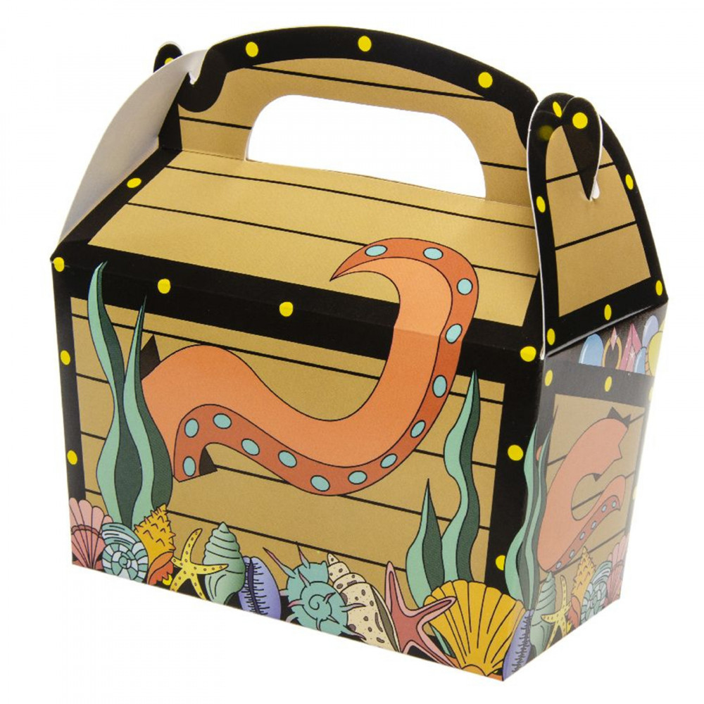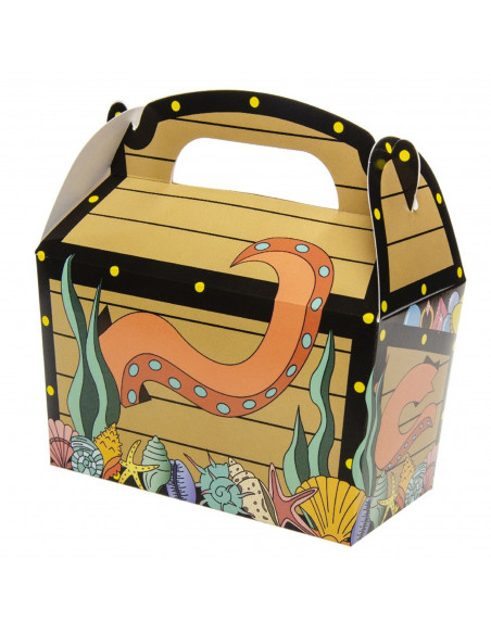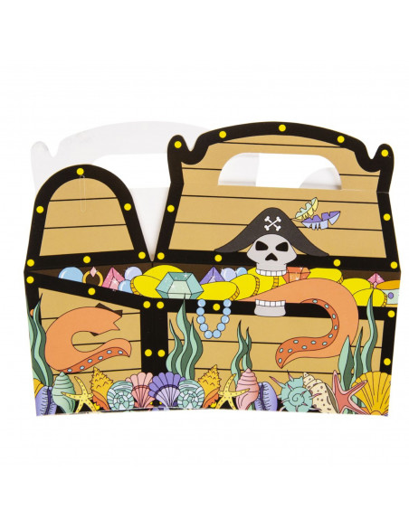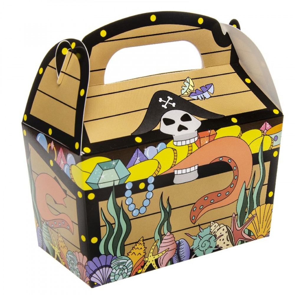 De Traktatiedoosjes Piraat zijn gemaakt van stevig karton en zijn verkrijgbaar per stuk. Ze zijn gemakkelijk in elkaar te vouwen en hebben een handig handvat om ze mee te dragen.