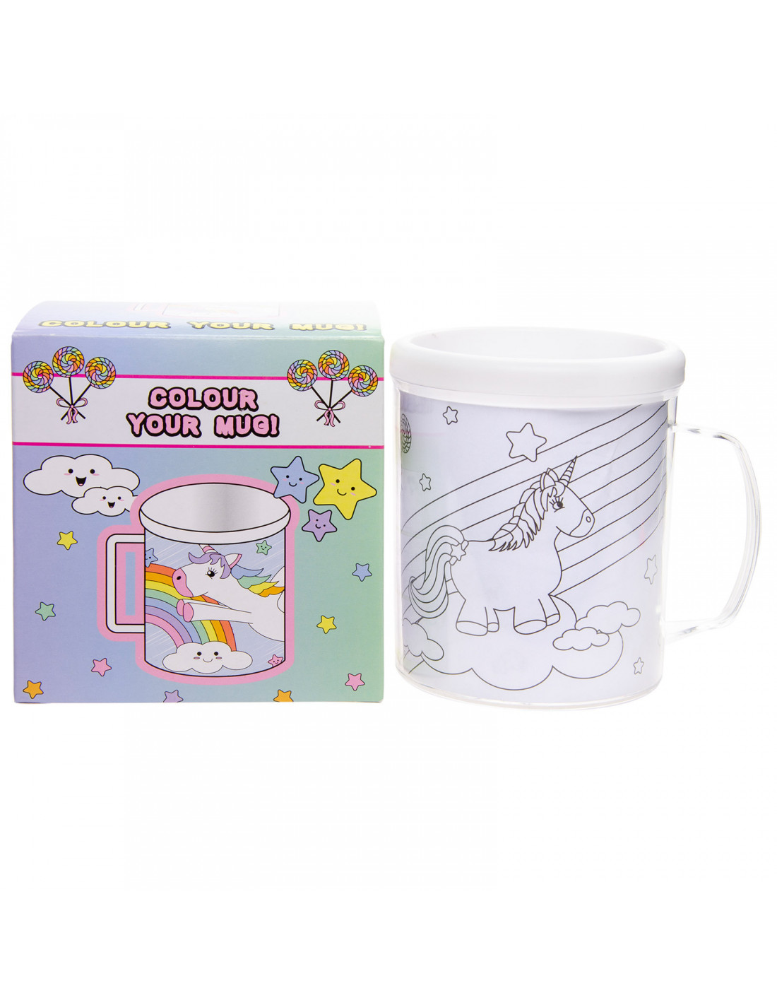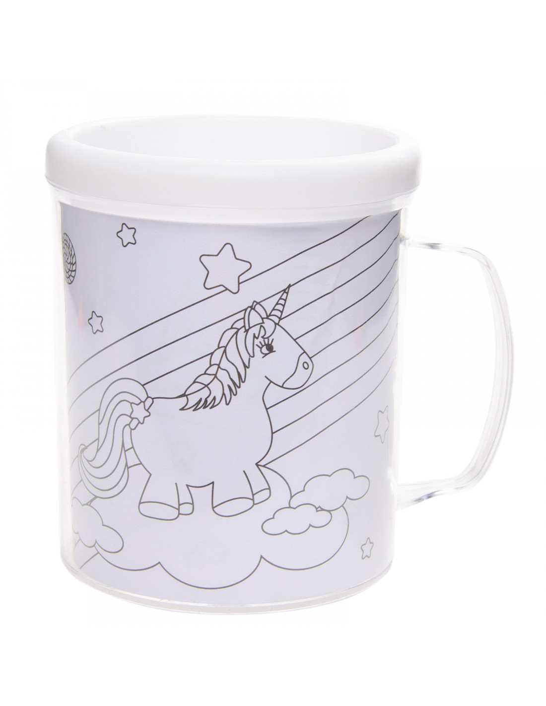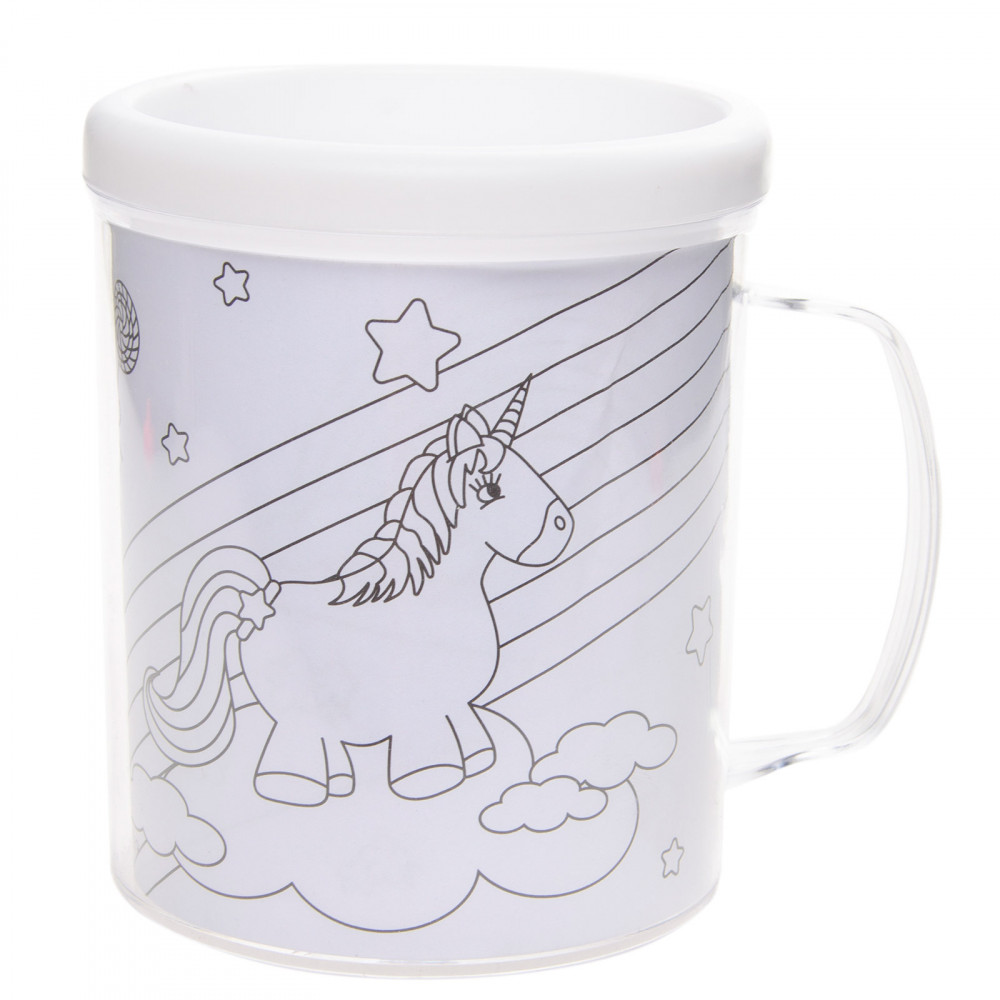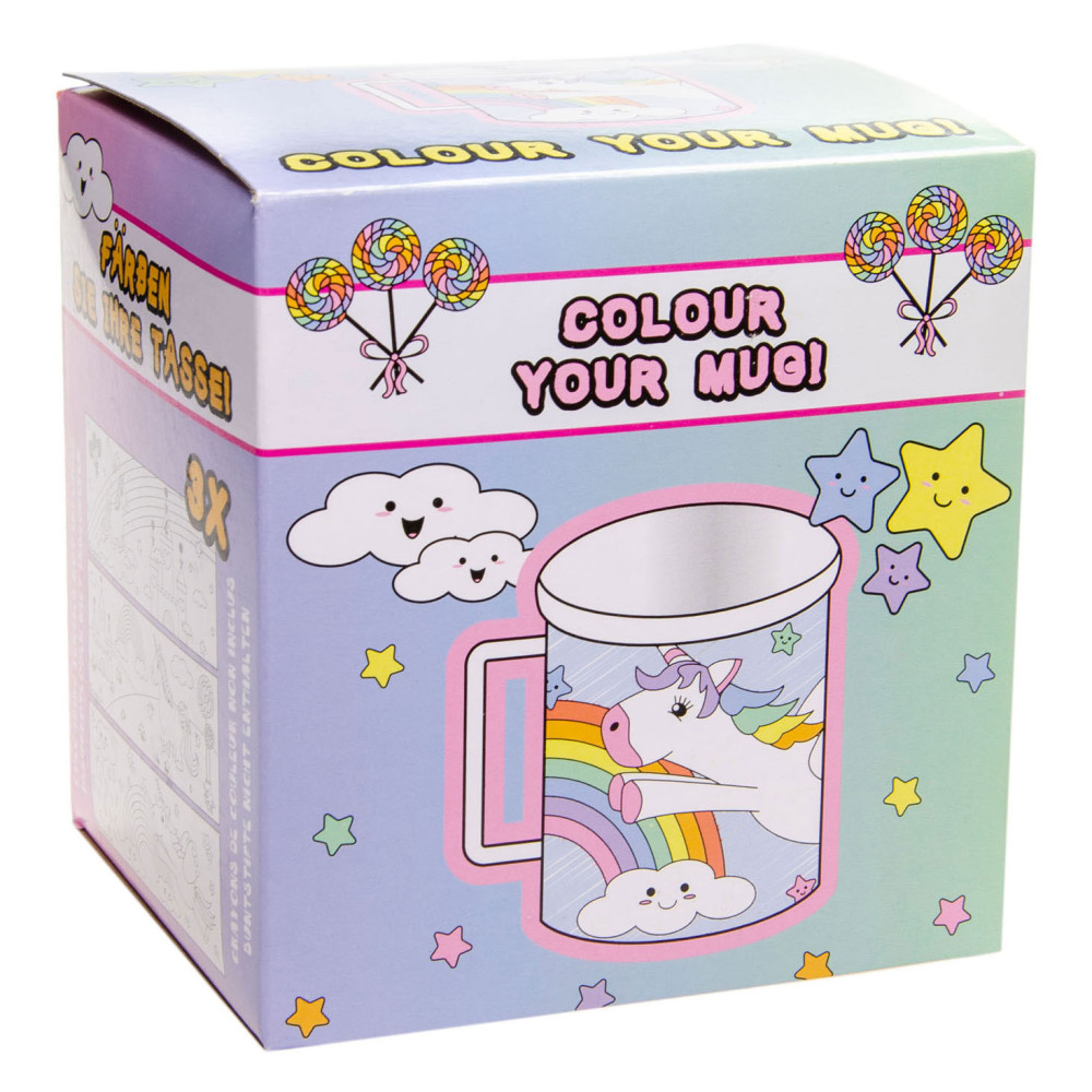 Deze unieke mok is de perfecte manier om je creativiteit te uiten en je eigen persoonlijke touch toe te voegen aan je dagelijkse kopje koffie of thee. In de mok zitten verschillende kleurplaten met een eenhoorn thema, zodat je je eigen mok kan versieren en personaliseren. Dankzij de dubbele wand in de binnenkant van de mok, blijft de tekening mooi droog.
