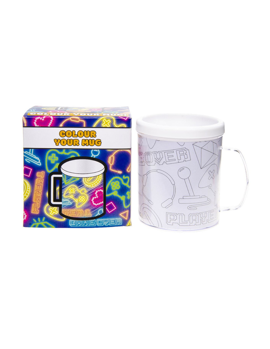 Breng je innerlijke gamer en kunstenaar samen met onze kleur je eigen kunststof mok set. Bestel vandaag nog en ontdek het plezier van kleuren en het personaliseren van je dagelijkse drinkervaring. Laat je creativiteit de vrije loop en maak van elk moment een kunstwerk!