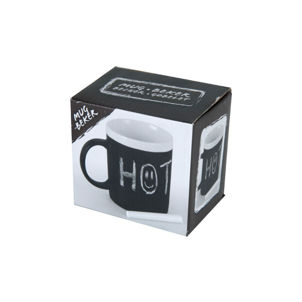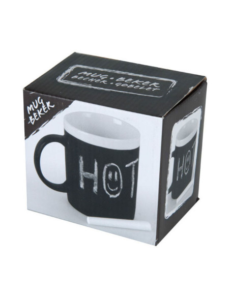 Een geweldig cadeau voor thuis of het werk: deze mok heeft een krijtbordfunctie en kan keer op keer opnieuw beschreven worden. Inclusief 2 krijtjes. Afmetingen: 9,2 x 8 centimeter.
