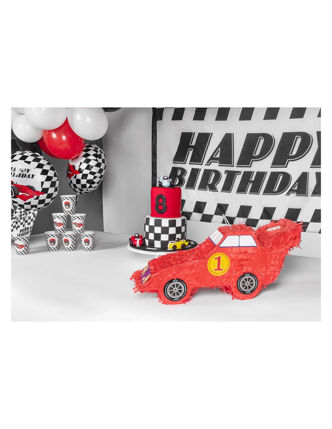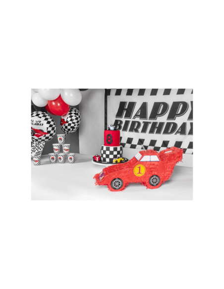 Piñata raceauto (55 x 23 x 15 cm) om zelf te vullen. Gemaakt van papier.