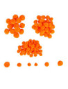 Elk zakje heeft 100 pompons van 0,5 x 1 x 1,5 cm in het oranje.
