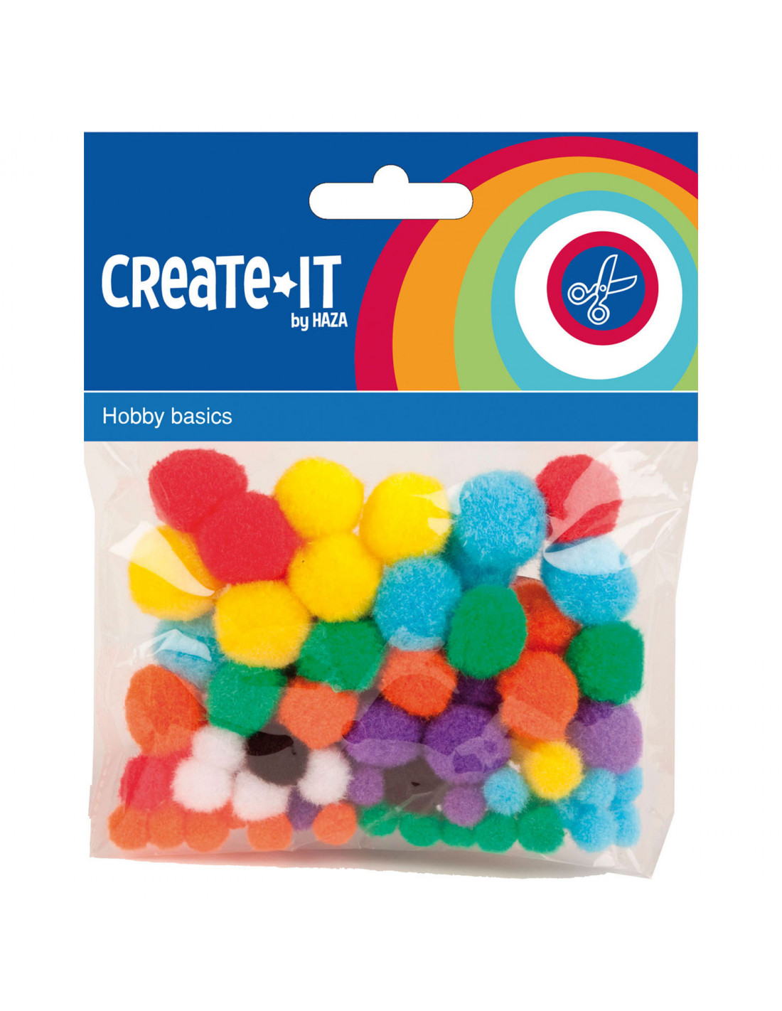 Gekleurde Pompoms, 78st. Inhoud: 78 stuks | 30x 10 mm, 20x 15 mm, 20x 20 mm, 8x 25 mm.