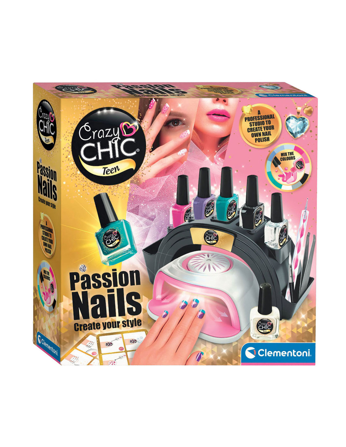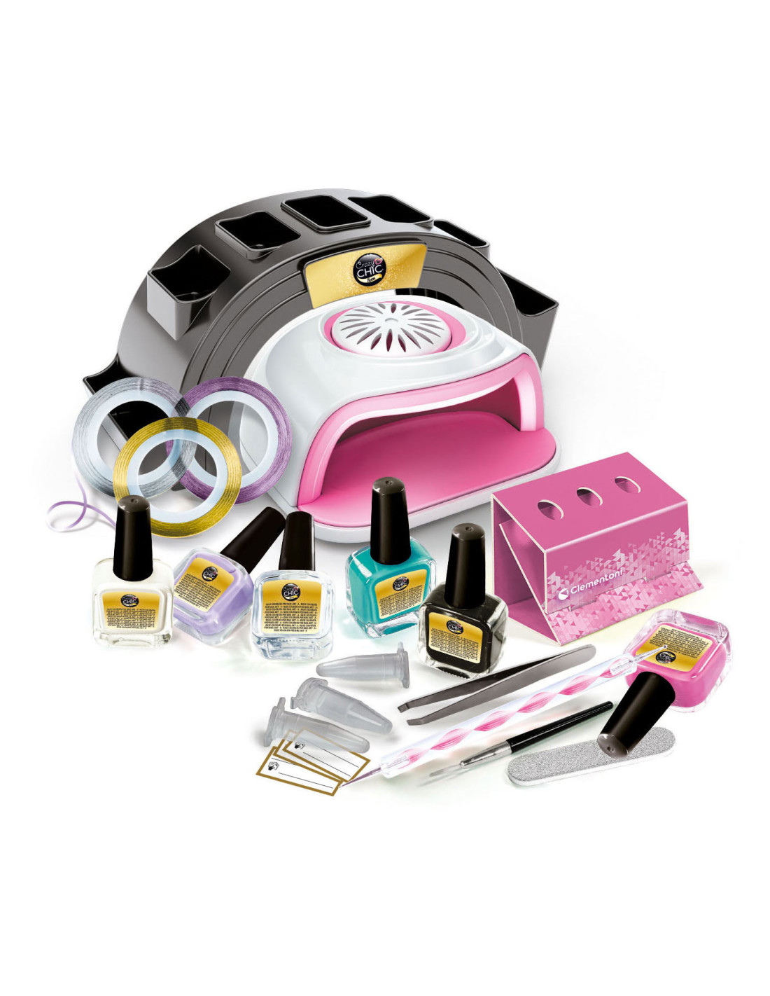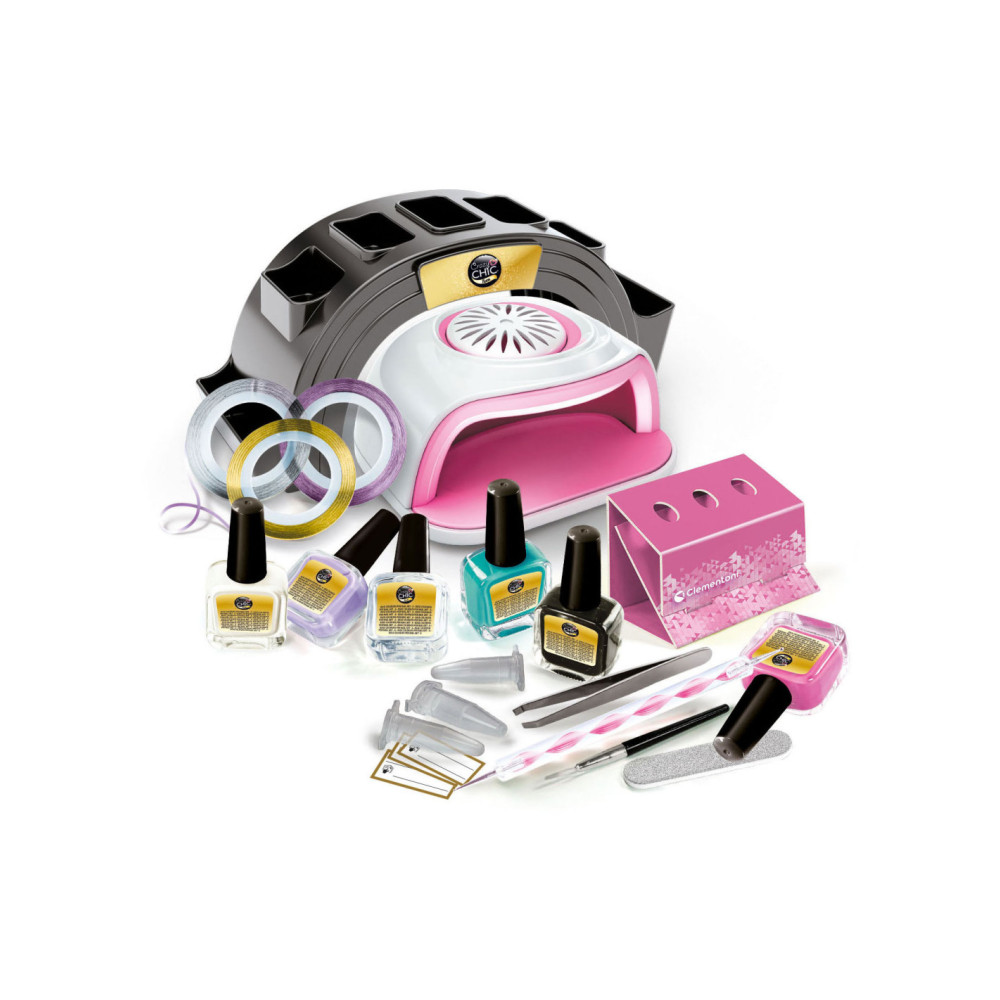Nagelset van Clementoni voor het maken van je eigen nagelkunst. Inhoud o.a.: 5 gekleurde nagellaks, 1 transparante nagellak, nagellakdroger, instrumentenhouder en vele accessoires. Geschikt vanaf 8 jaar.