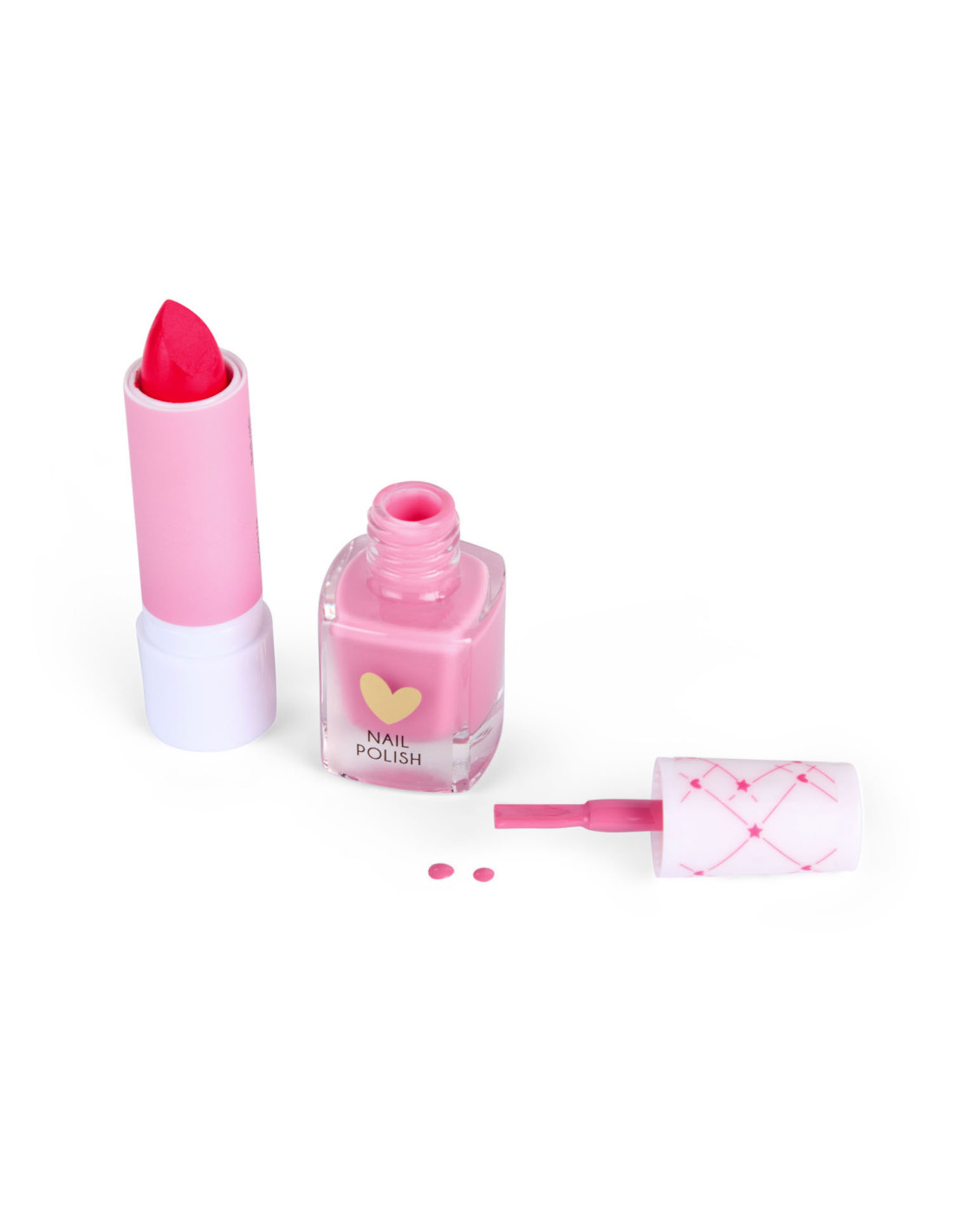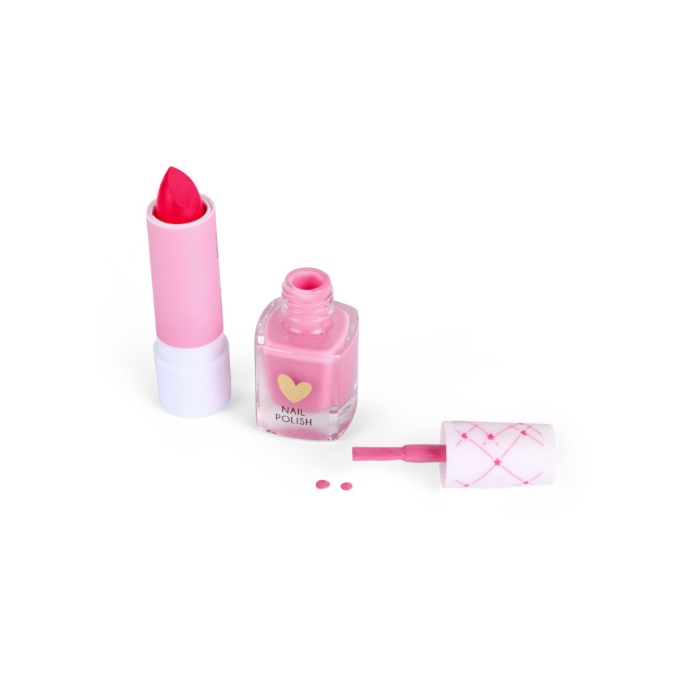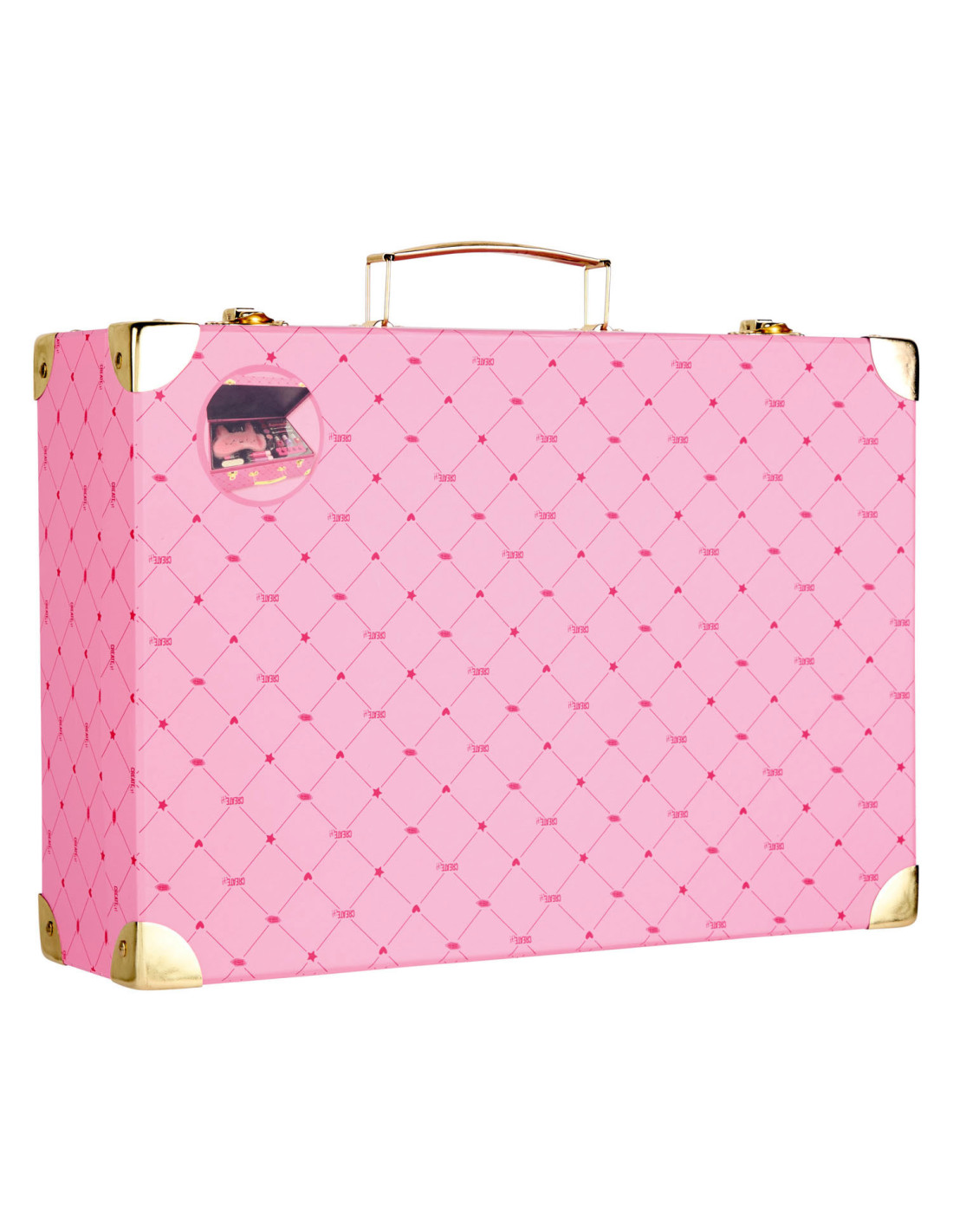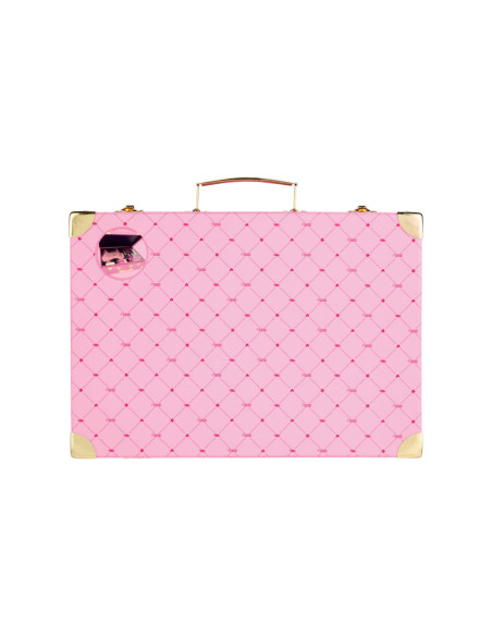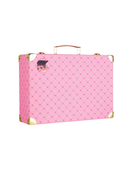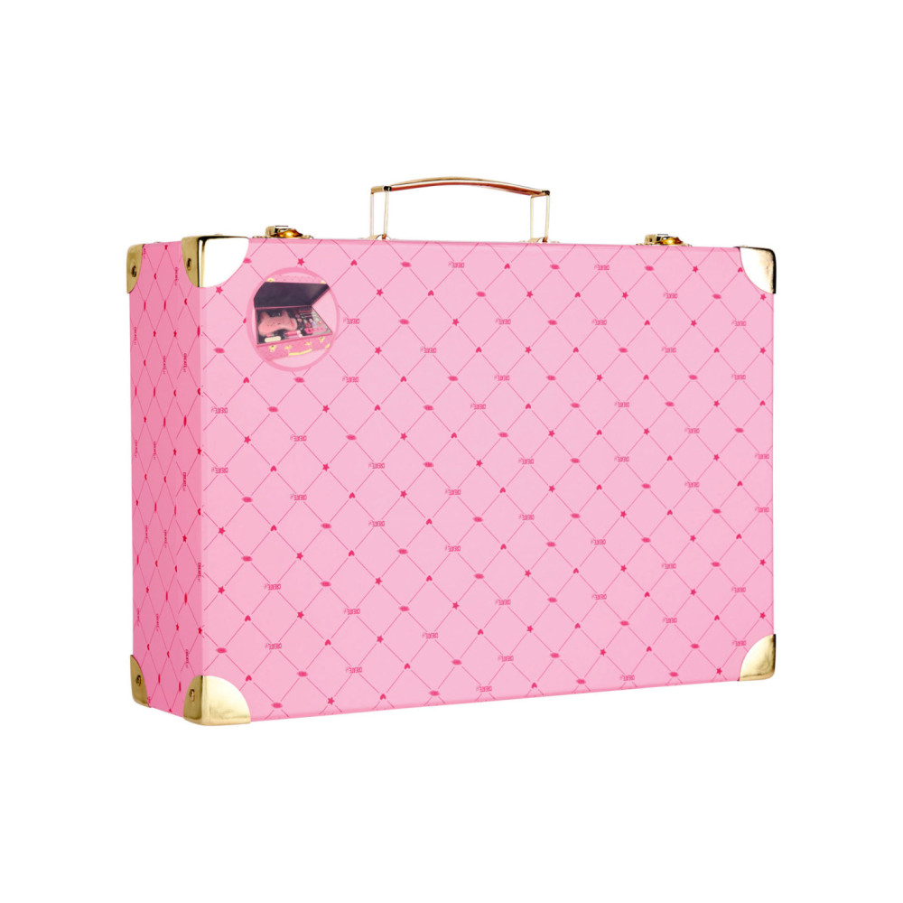 Maak je klaar voor een geweldige make-over met de Create it! Deluxe Make-up Case Goud! Deze stralende roze make-upkoffer met gouden accenten zit vol beauty essentials, waaronder een roze konijnenslaapmasker, een make-upborstel, een nagelvijl, 2 lippenstiften (roze en paars) met een vanillegeur, een teenspreider, 3 nagellakjes (2 roze en een paarse), 2 dubbelzijdige borsteltjes, 4 stralende oogschaduwkleuren (roze, pastelroze, paars en goud), en 2 lipglosses (roze met watermeloengeur en paars met bosbessengeur). Deze luxe set heeft alles wat je nodig hebt om fantastische looks te maken, waardoor het het perfecte cadeau is voor jonge beauty lovers die willen ontdekken en plezier willen hebben met make-up.
