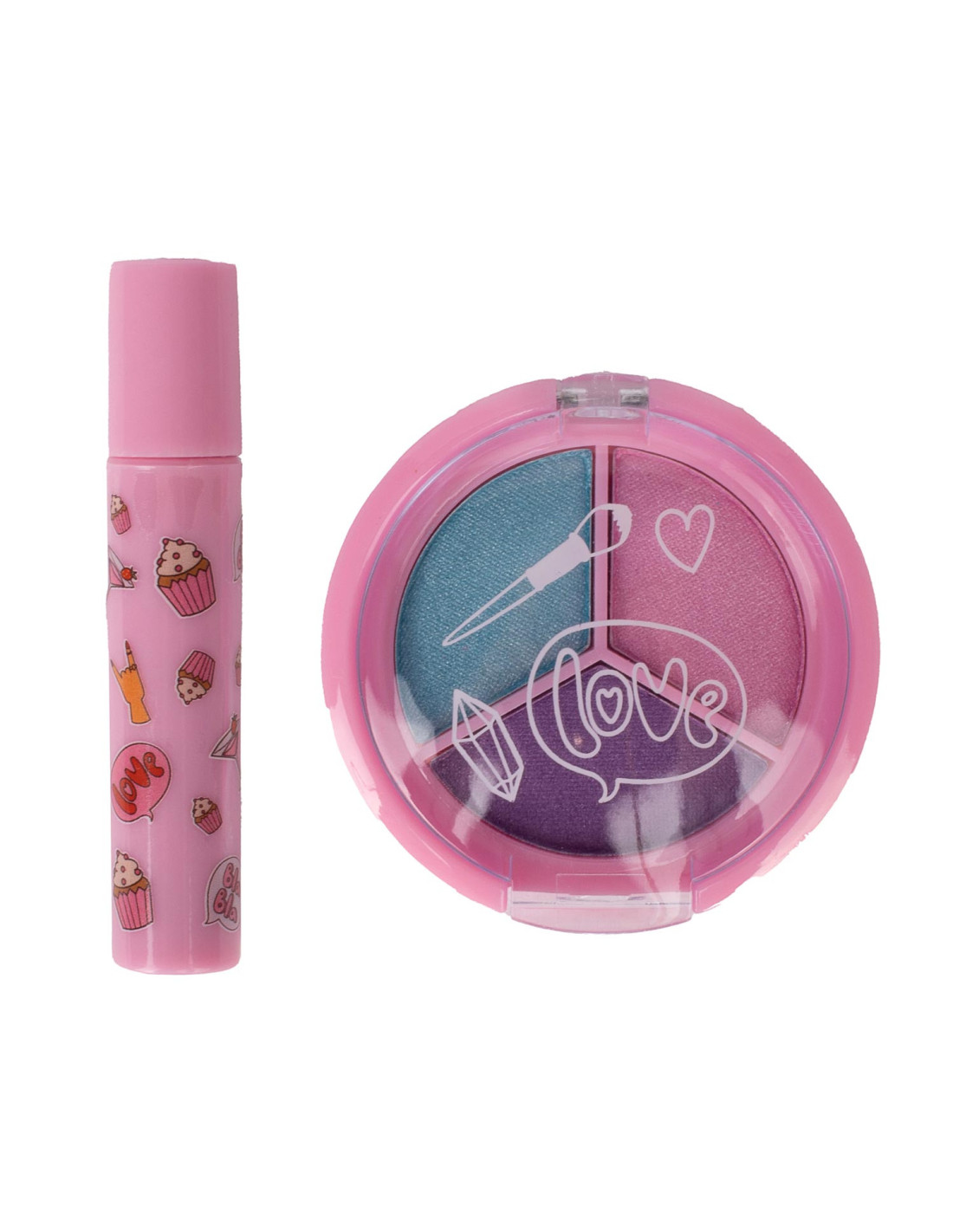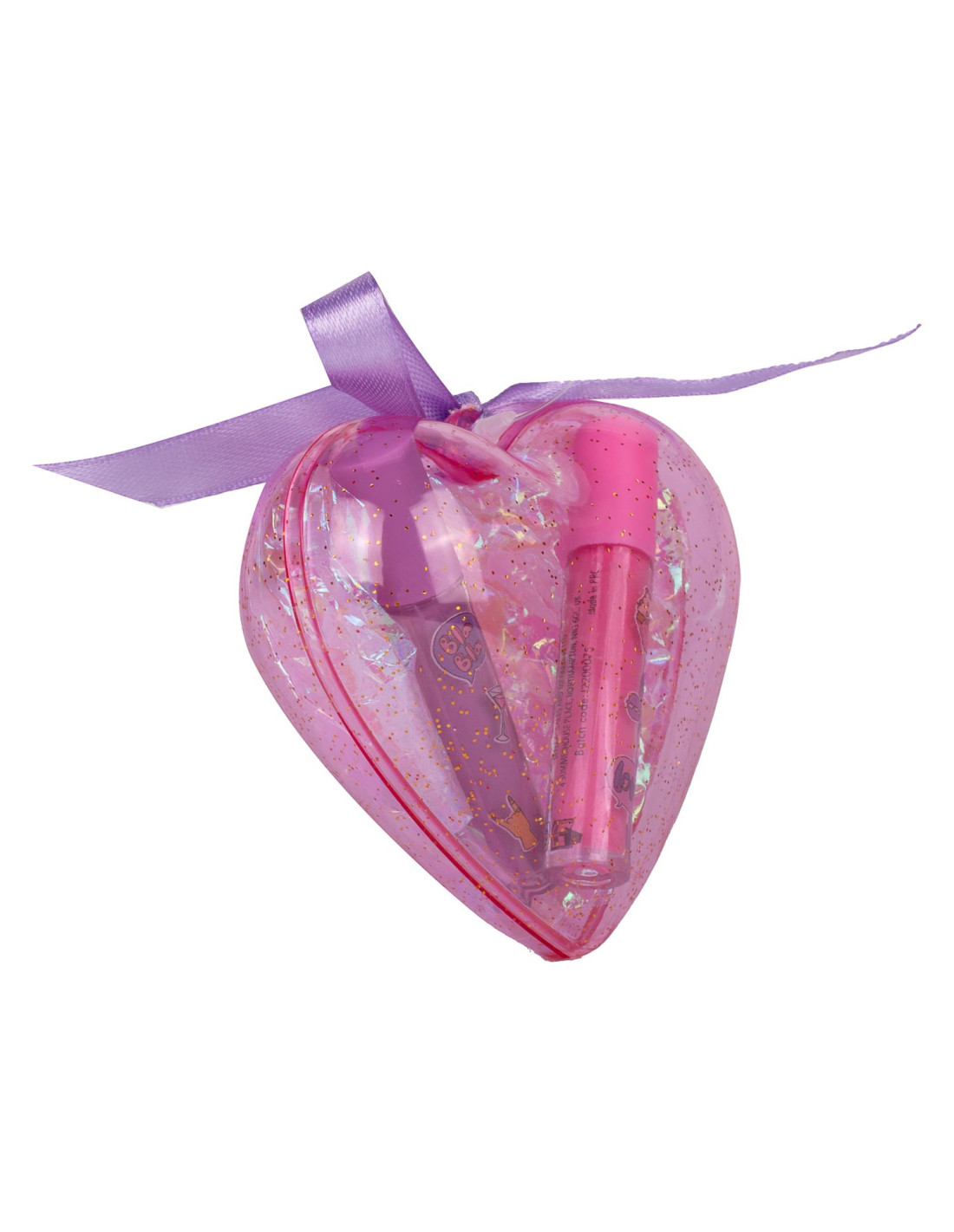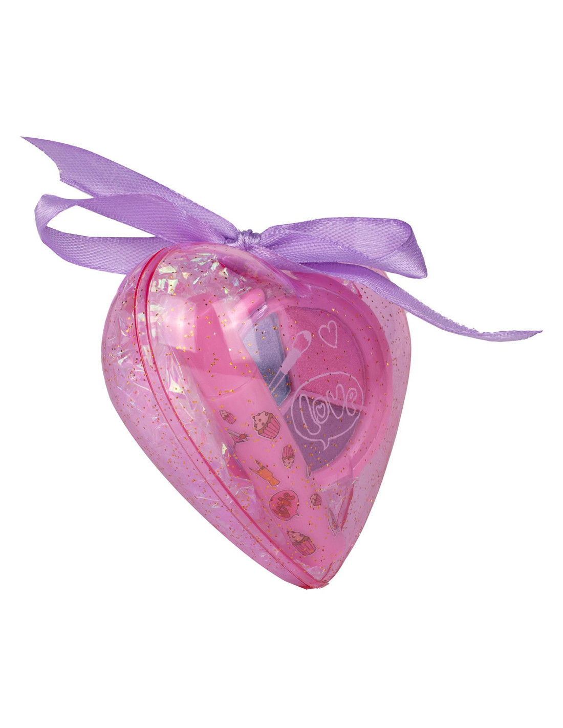 Kunststof hartje van Create It! gevuld met twee stuks speelgoedmake-up voor kinderen. Verkrijgbaar in drie setjes: 2 nagellakjes, oogschuw en mascara & 2 tinten lipgloss. Geschikt voor kinderen vanaf 6 jaar oud.