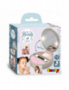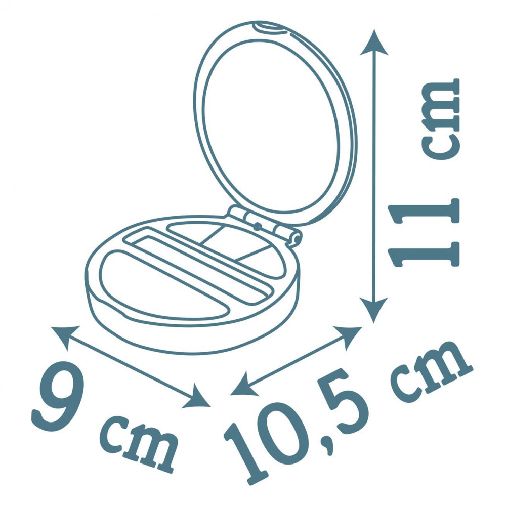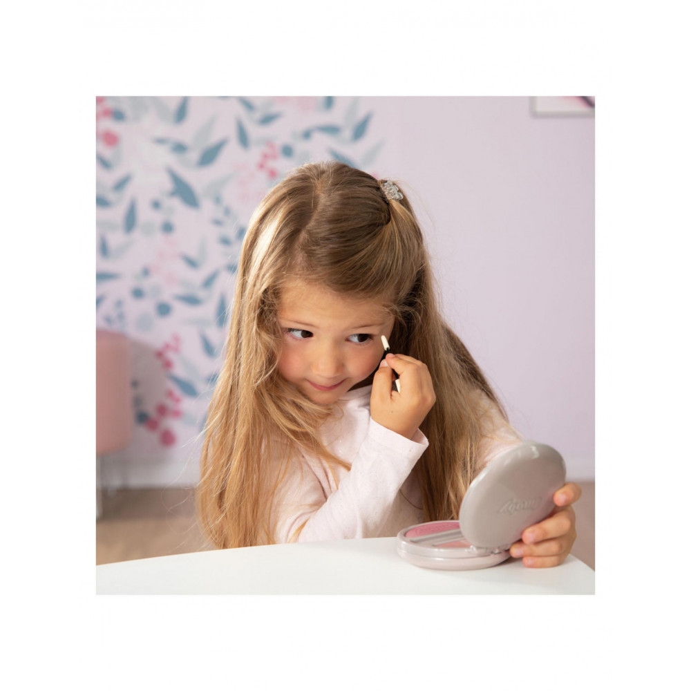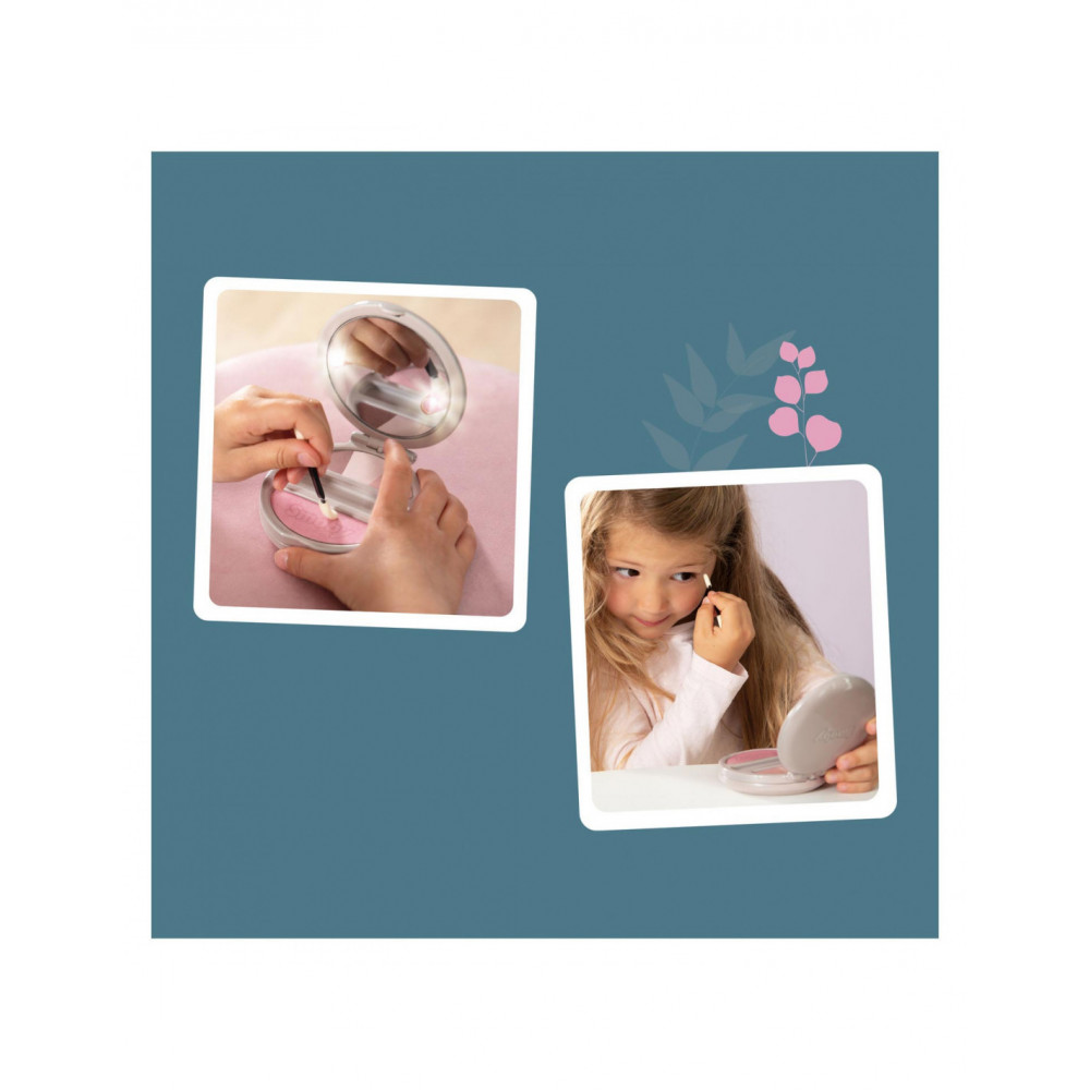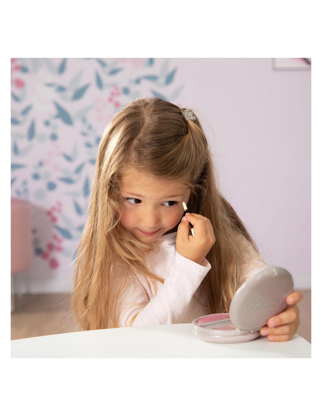 Speelgoed poederdoos van Smoby My Beauty, met spiegel en ingebouwd licht. Inclusief één kwastje en vier kleuren neppoeder. Werkt op 2 AAA-batterijen (niet inbegrepen) en geschikt voor kinderen vanaf 3 jaar.