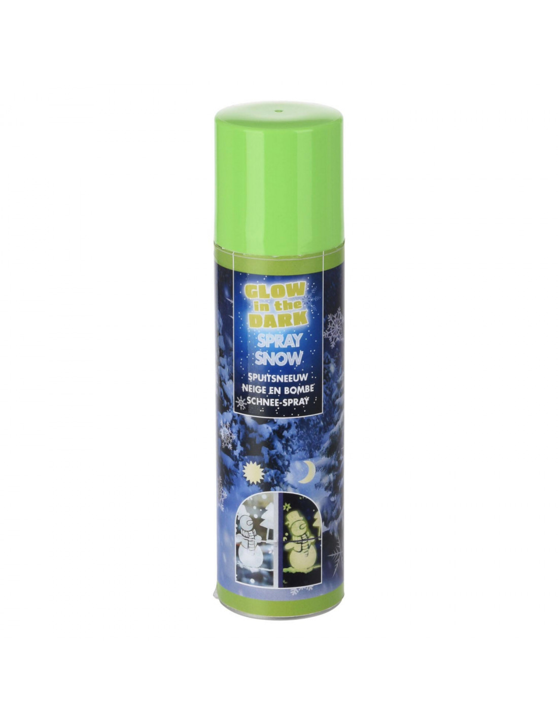 Glow in the dark kunstsneeuw uit een spuitbus. Inhoud: 150ml. Niet geschikt voor kinderen onder de 3 jaar oud.