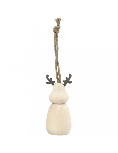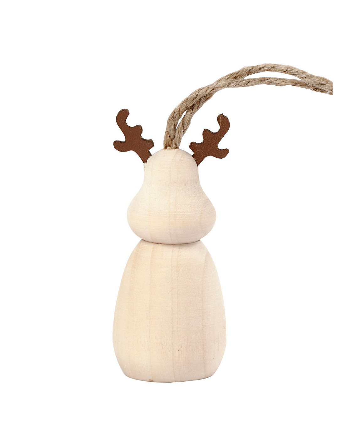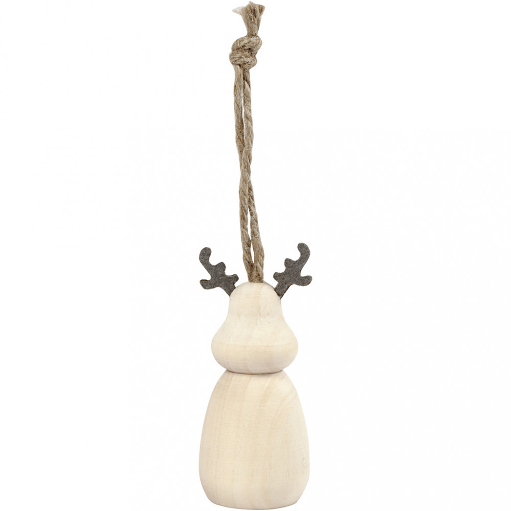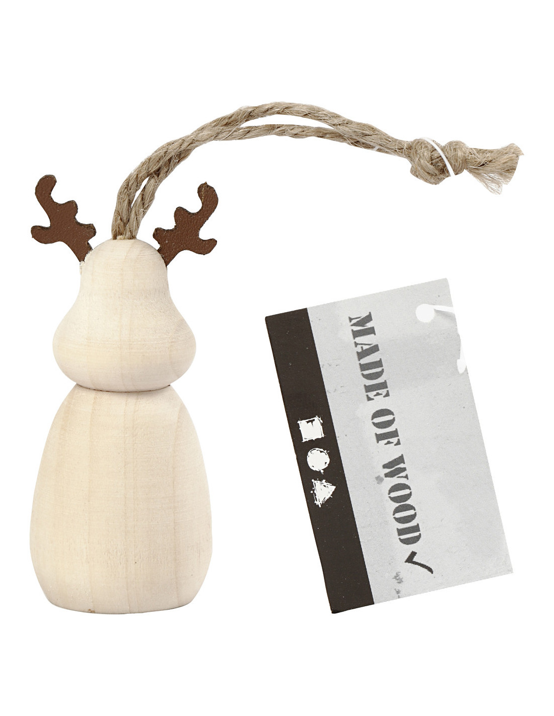 Houten rendier met ophanglus, H: 7 cm, d: 3 cm, 1 stuk.