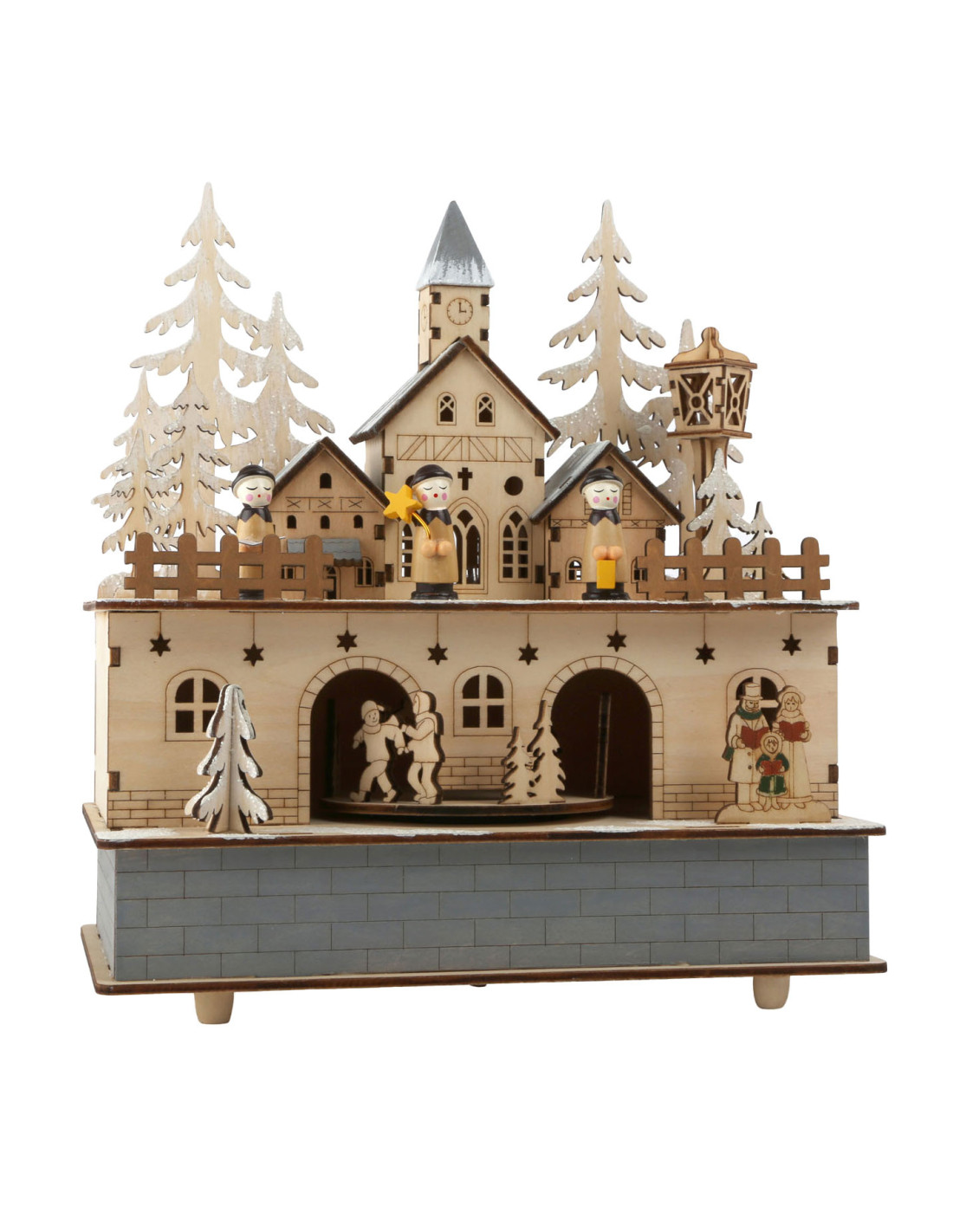 Welkom in Winterwonderland! Deze prachtige muziekdoos van fijn vervaardigd gelamineerd hout is een echte blikvanger. Dit houten muziekdoosje speelt een prachtige melodie "Stille nacht" terwijl de dorpelingen onder het dak op het perron in een cirkel ronddraaien. Een fantastisch cadeau voor de adventtijd!