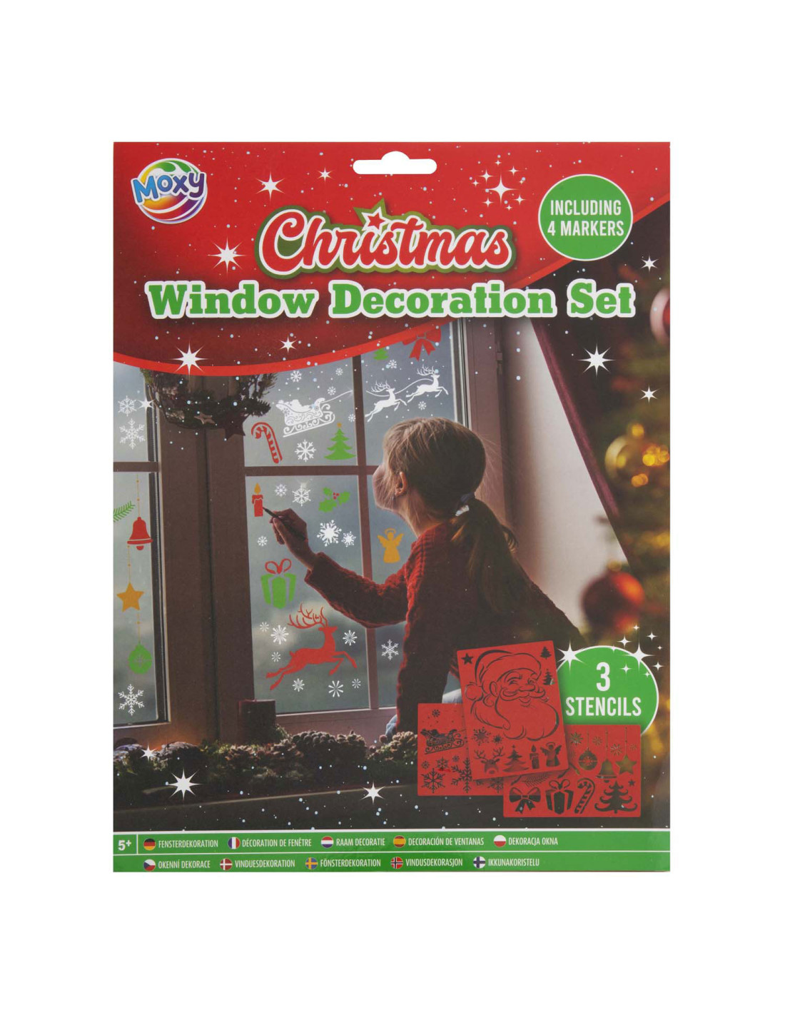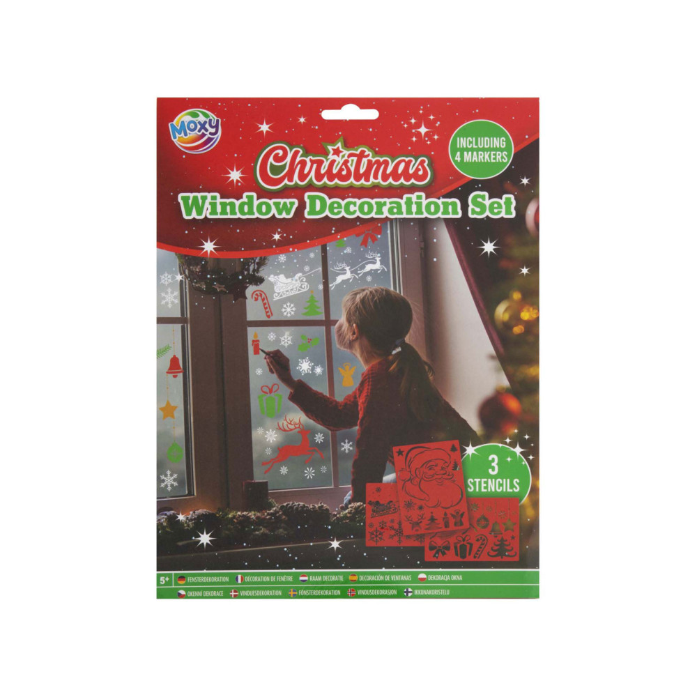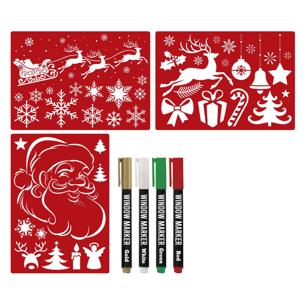 Kerstmis raamdecoratie set. Inclusief 3 vellen met sjablonen en 4 stiften. Geschikt voor kinderen vanaf 5 jaar.