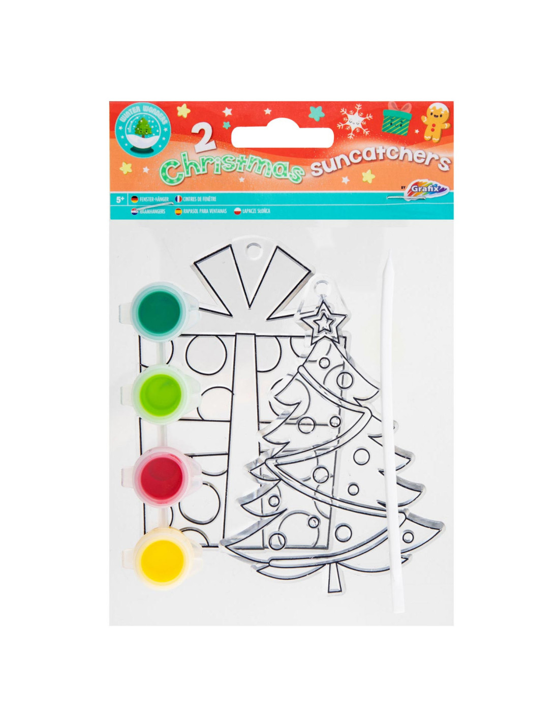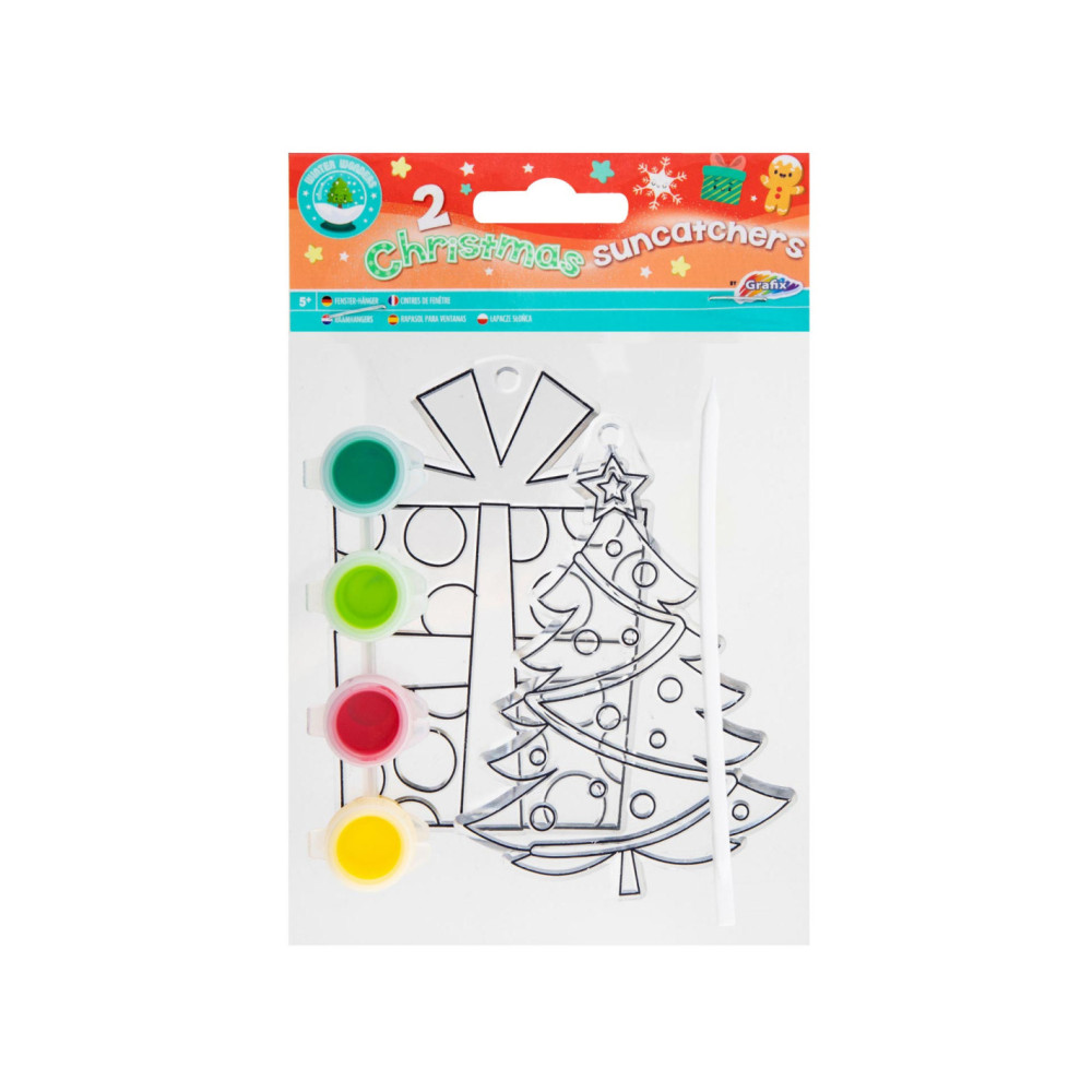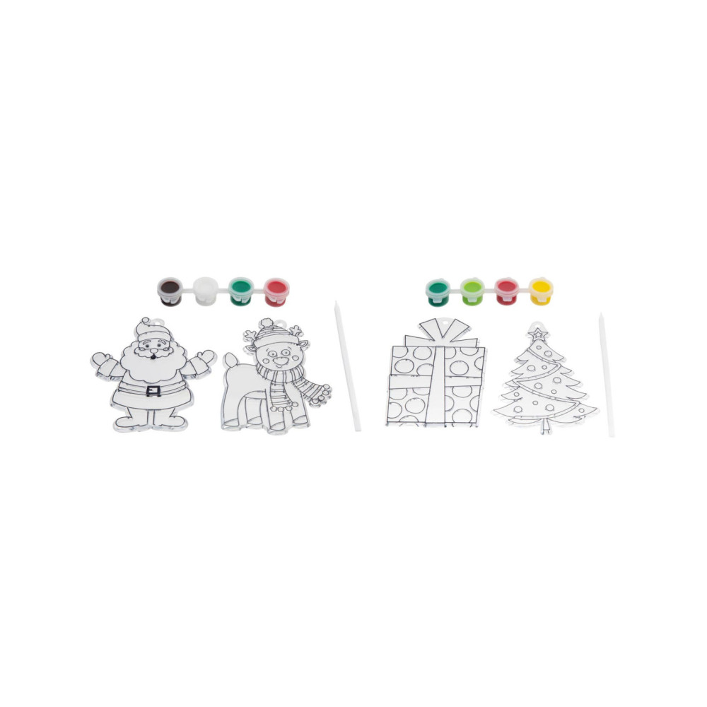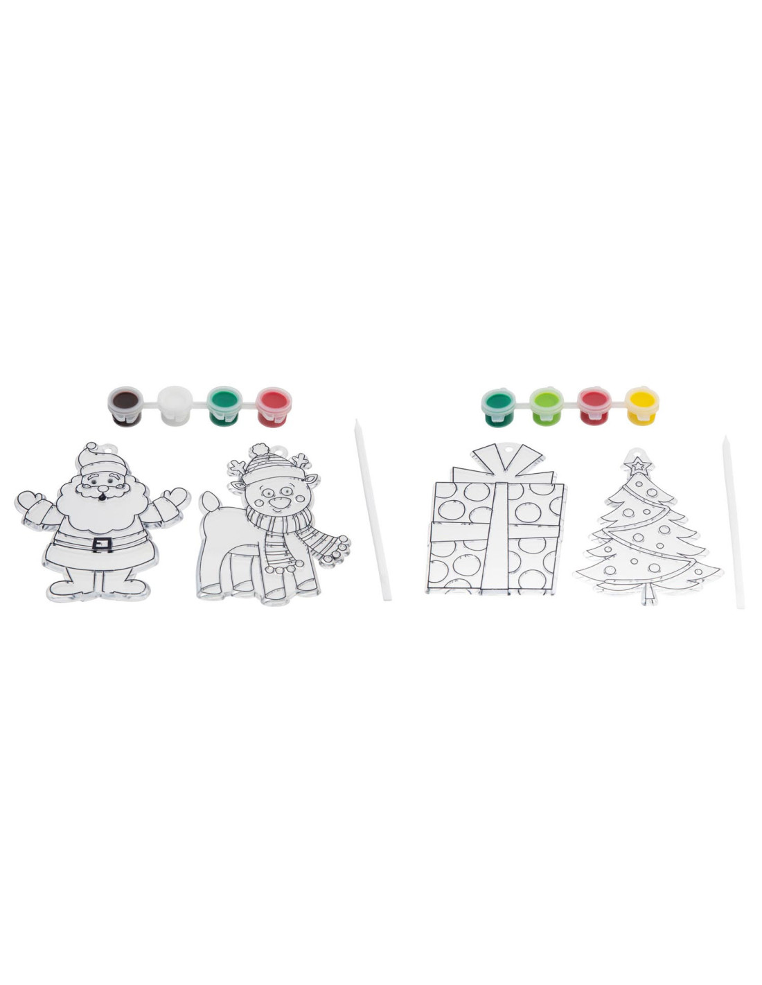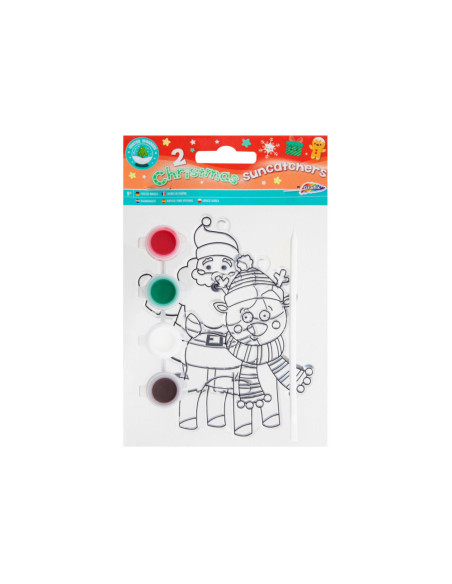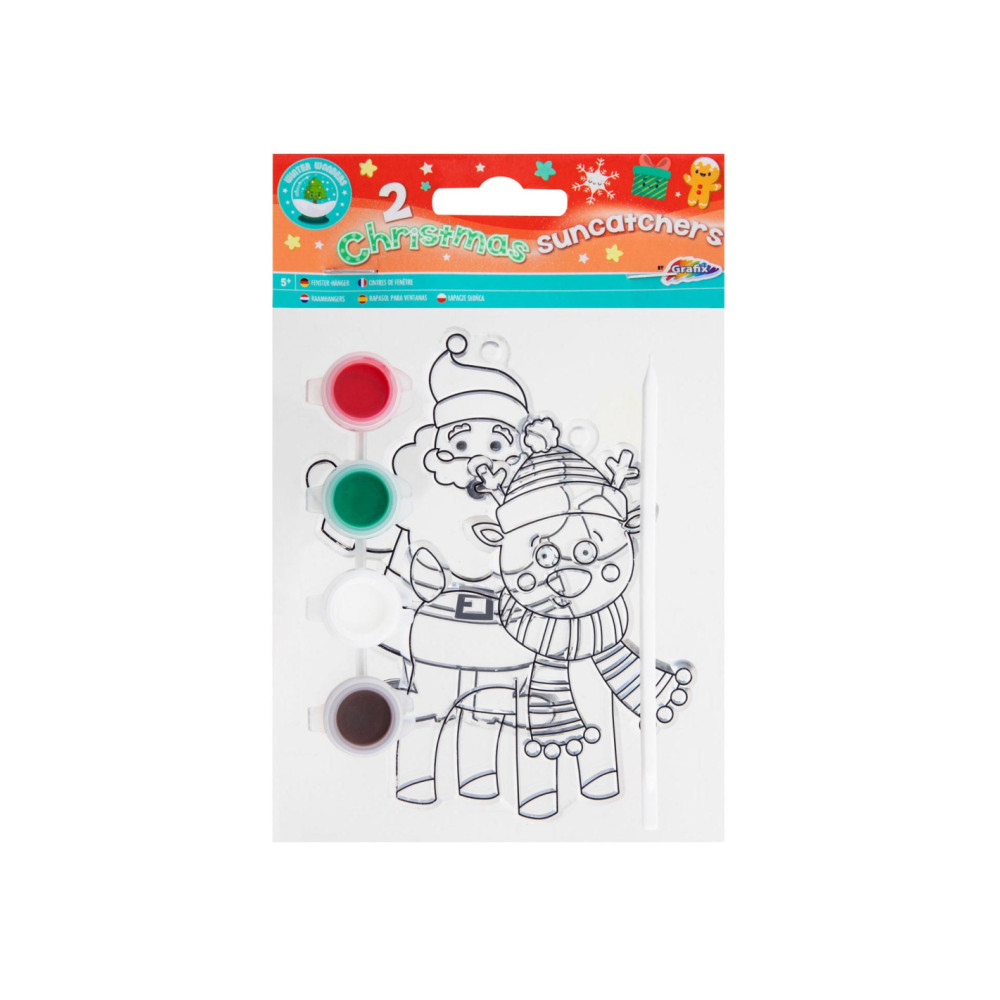 Knutselset 2 stuks raamhangers in kerstthema. Inclusief 4 kleuren verf. Geschikt van 5 tot 8 jaar.