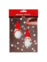 Materialenset voor 2 engelen met vastgelijmde vilten cirkels voor het lichaam..Inhoud: voorgeknipt rood velours en wit vilt, piepschuimlichamen, houten gezichten, haar, koord om op te hangen en draad. Instructies inbegrepen. De grootte geeft de afmetingen van het eindproduct aan