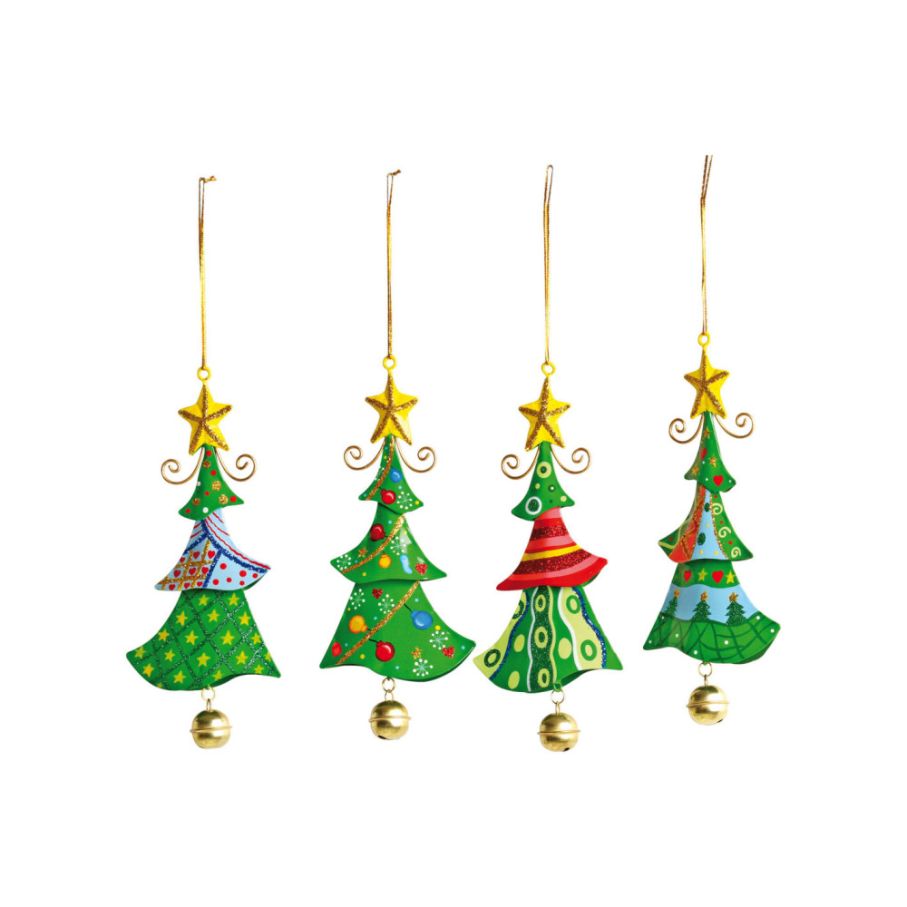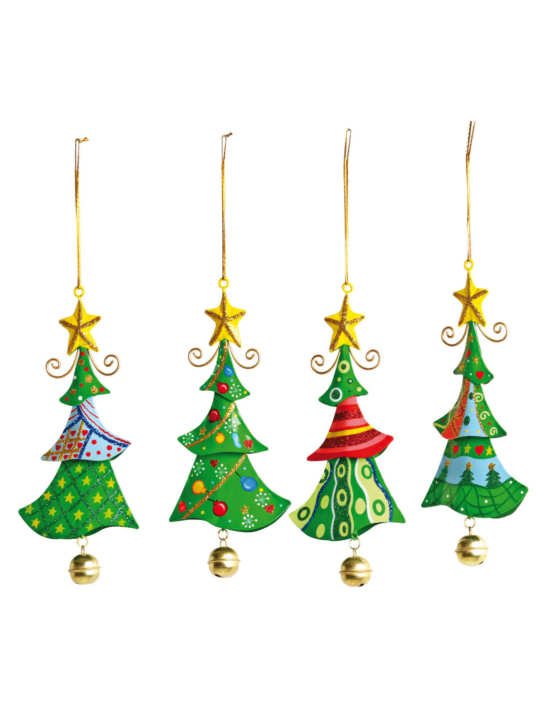 Deze vrolijk vormgegeven dennenbomen zijn een kleurrijke decoratie tijdens de feestdagen. Met hun belletjes zijn het echte blikvangers in de kerstboom, op deurdecoratie of in etalages!