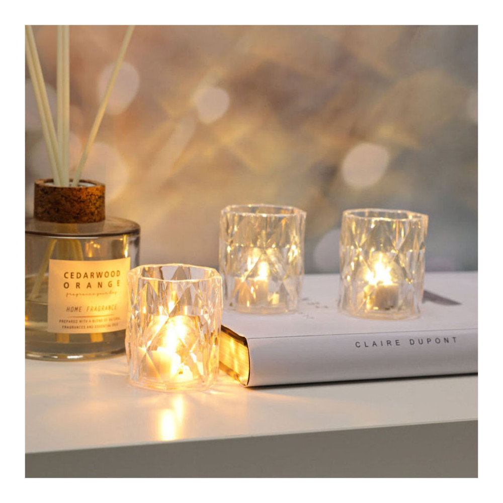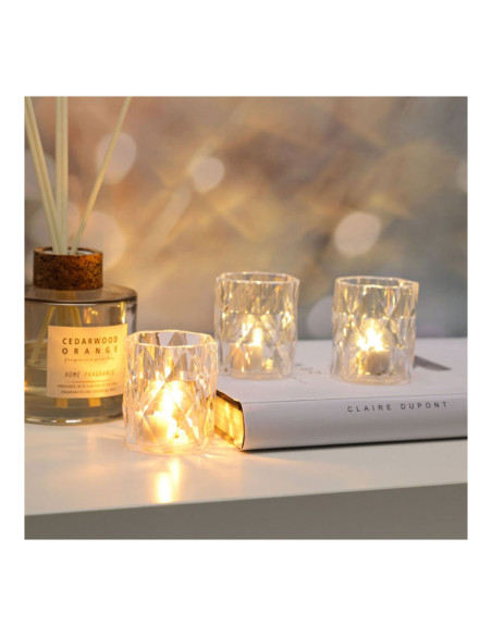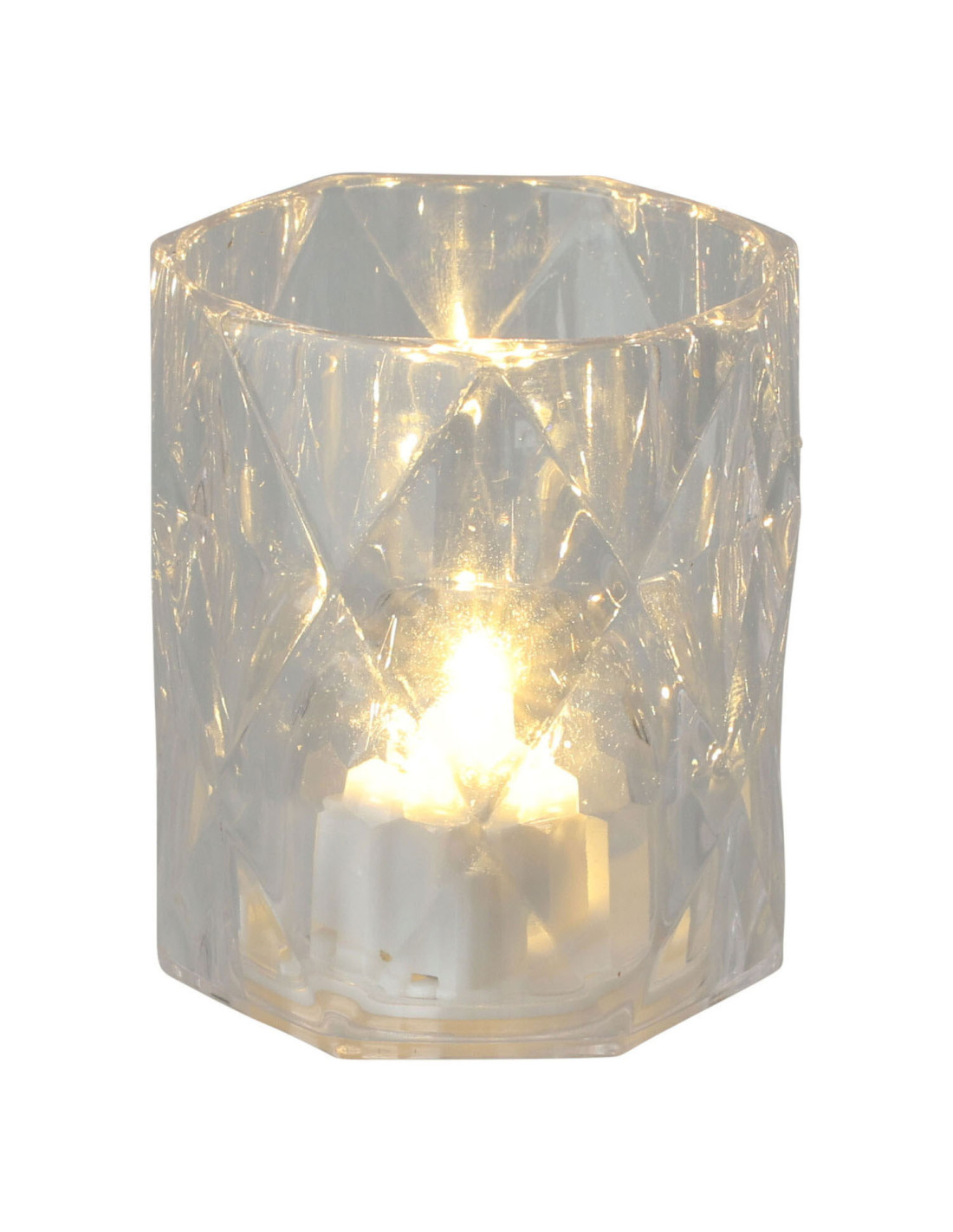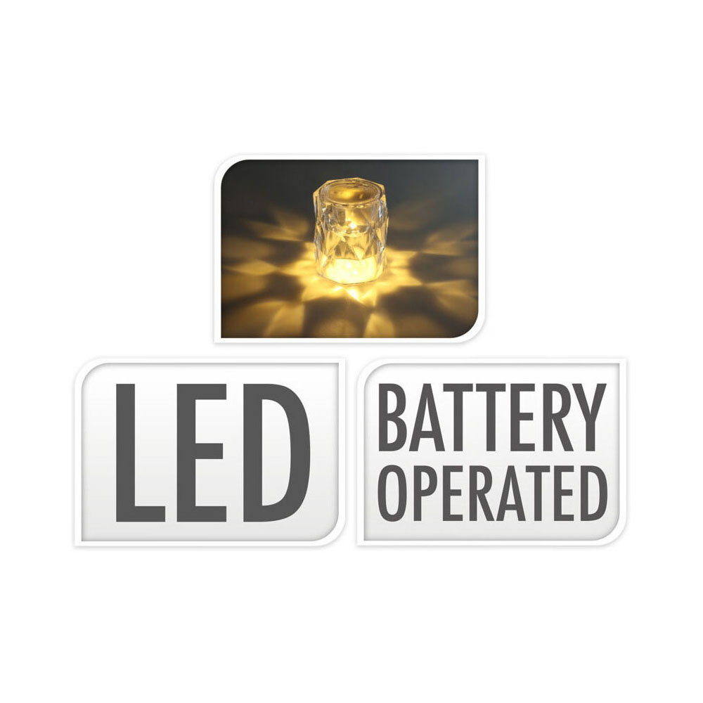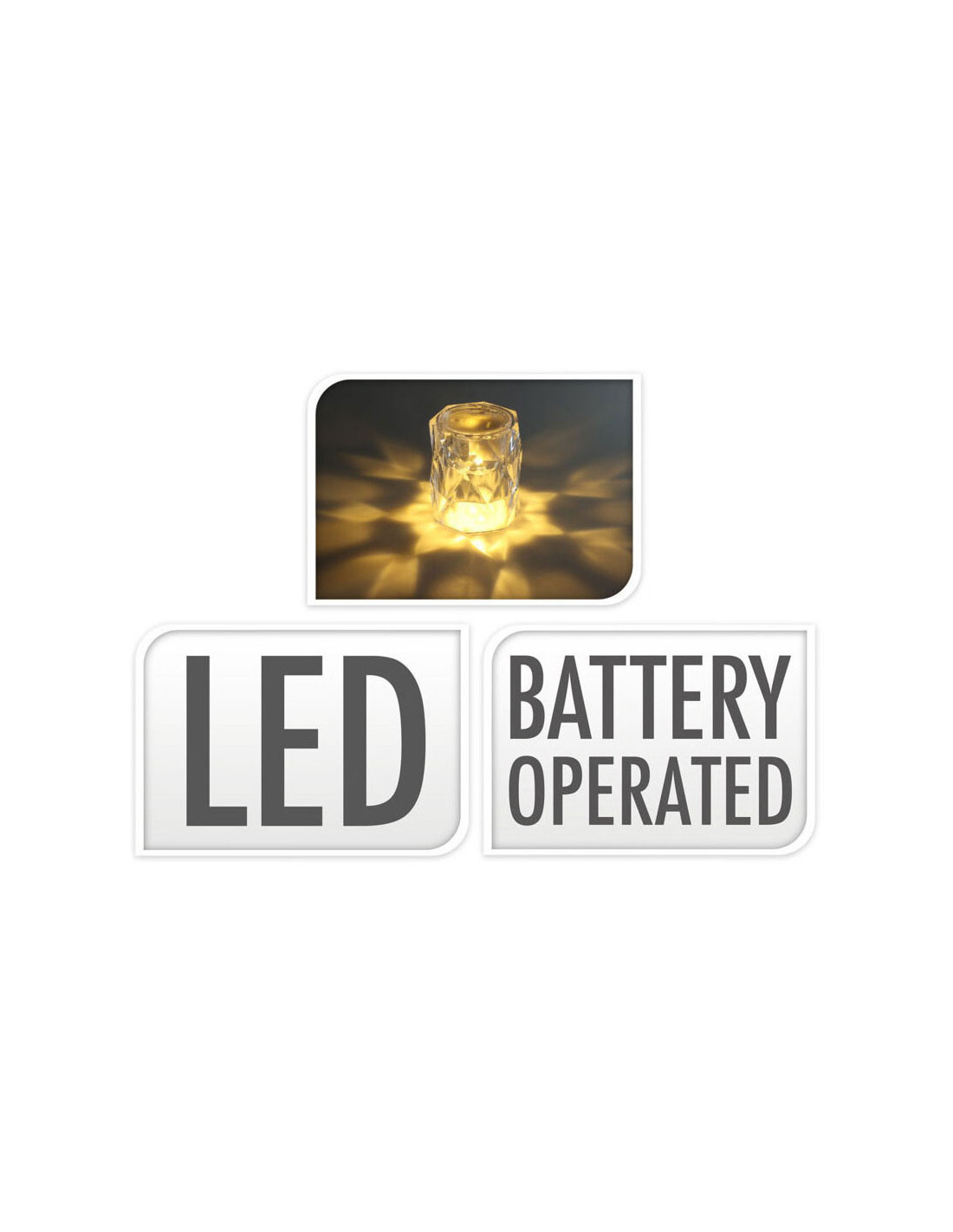 Set van 12 kunststof minilampjes, 6 cm groot. Inclusief batterijen.