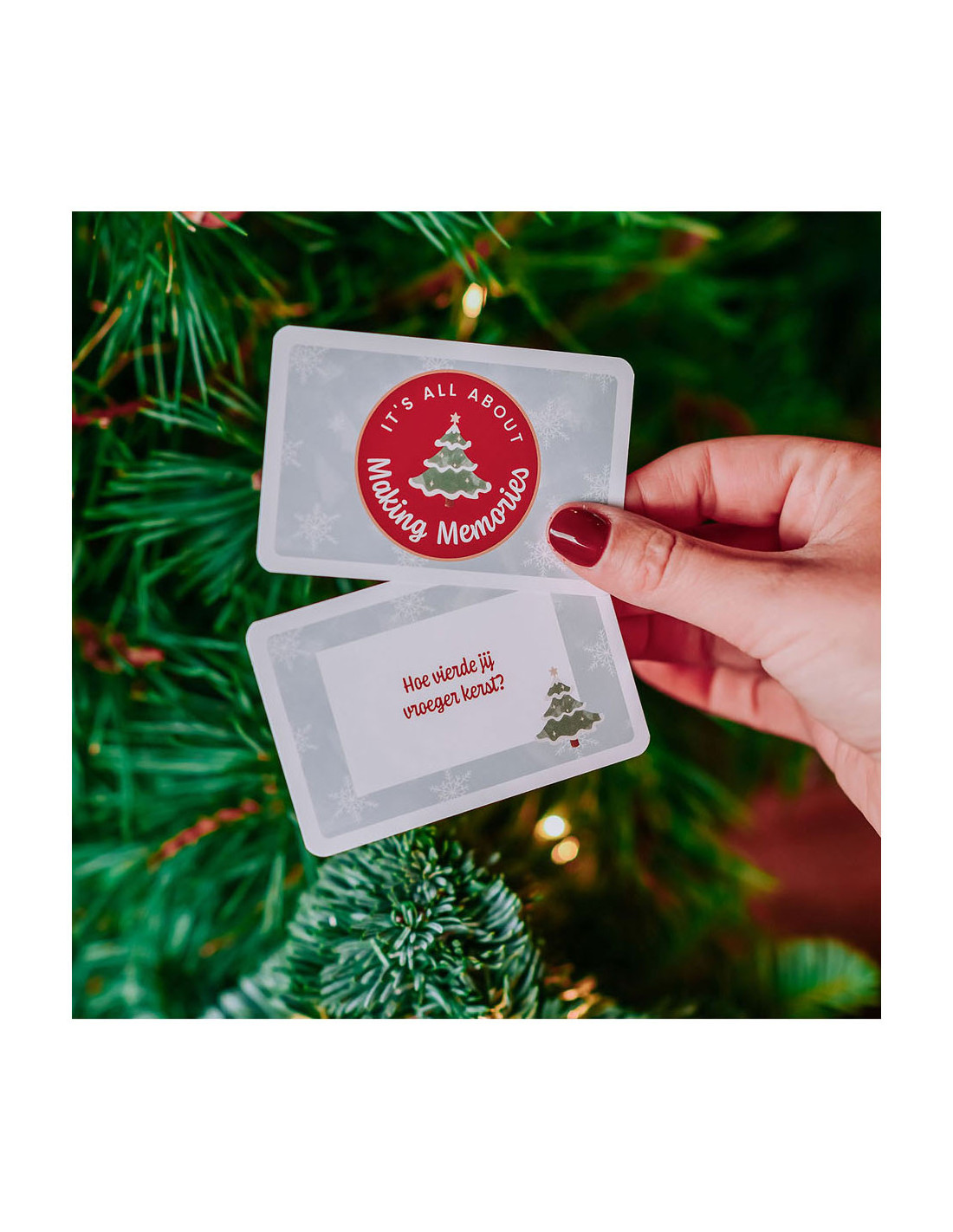 Dat kerstmis voor velen draait om familie en vrienden is geen verrassing. Dat je gezamelijk zowel een competitef als diepgaand spel kunt spelen is nieuw. Het doel van het kerstspel is om zeventig vakjes te bewandelen en onderweg zo veel mogelijk kerstballen in de 3D-kerstboom te hangen en vragenkaartjes te verzamelen. De vragen testen je kerst- en nieuwjaarskennis en zijn voor kinderen eenvoudig en voor volwassen wat ingewikkelder. Kom je op een vakje waar een Making Memories-vraag mag pakken, dan beantwoord je vragen zoals: Wat is je dierbaarste kerstherinnering? of Met wie zou jij het liefst kerst willen vieren? Die brengen de leukste, grappigste en bijzonderste kerstherinneringen naar boven. Zo leer je elkaar nóg beter kennen!