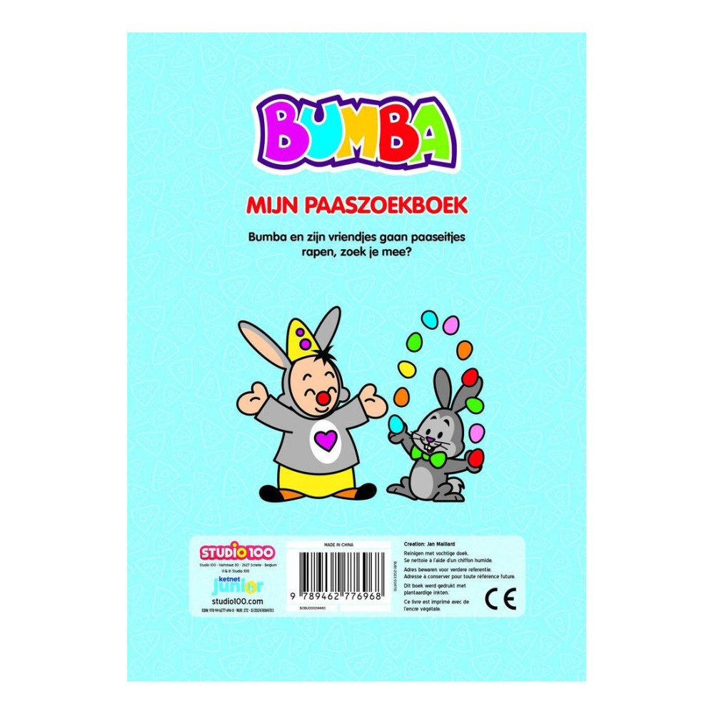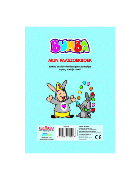 Bumba en zijn vriendjes gaan paaseitjes rapen, zoek je mee? Een stevig kartonboek voor de allerkleinsten.