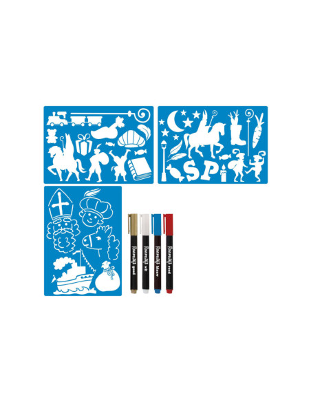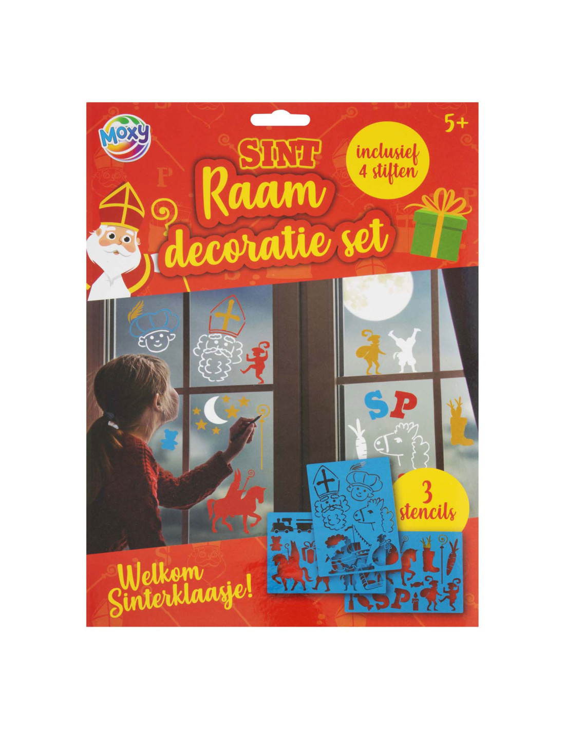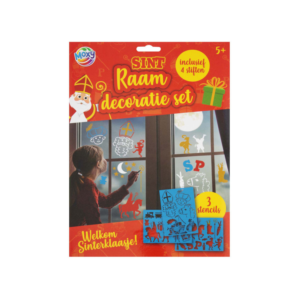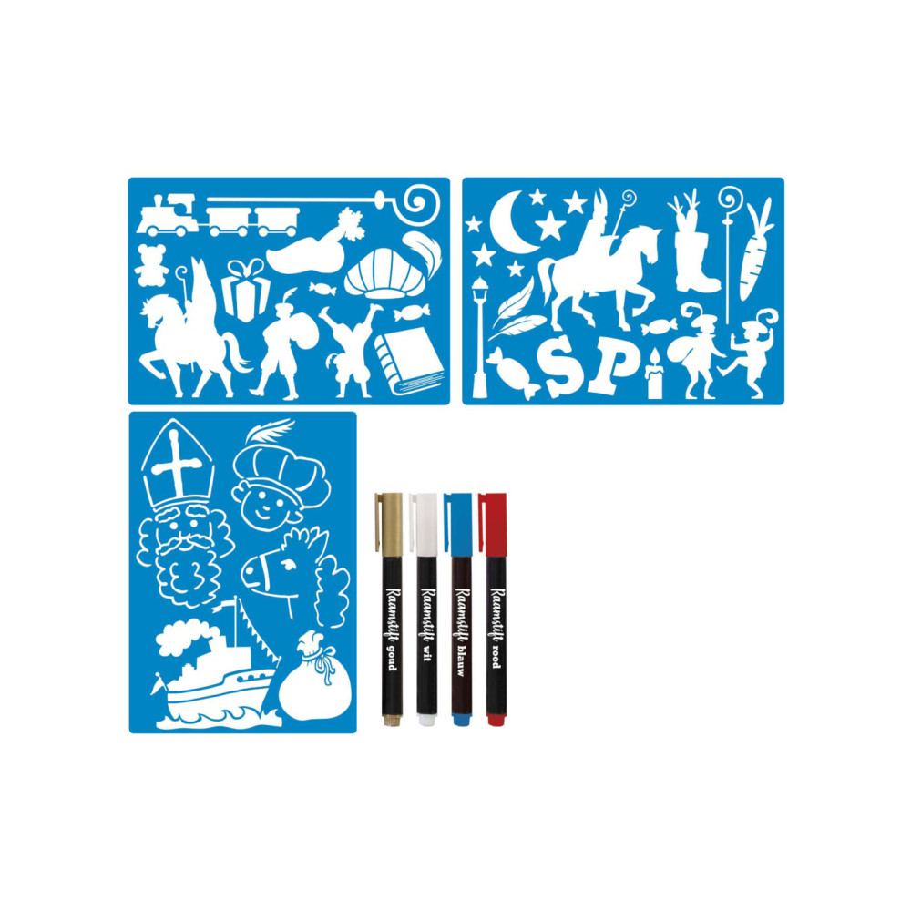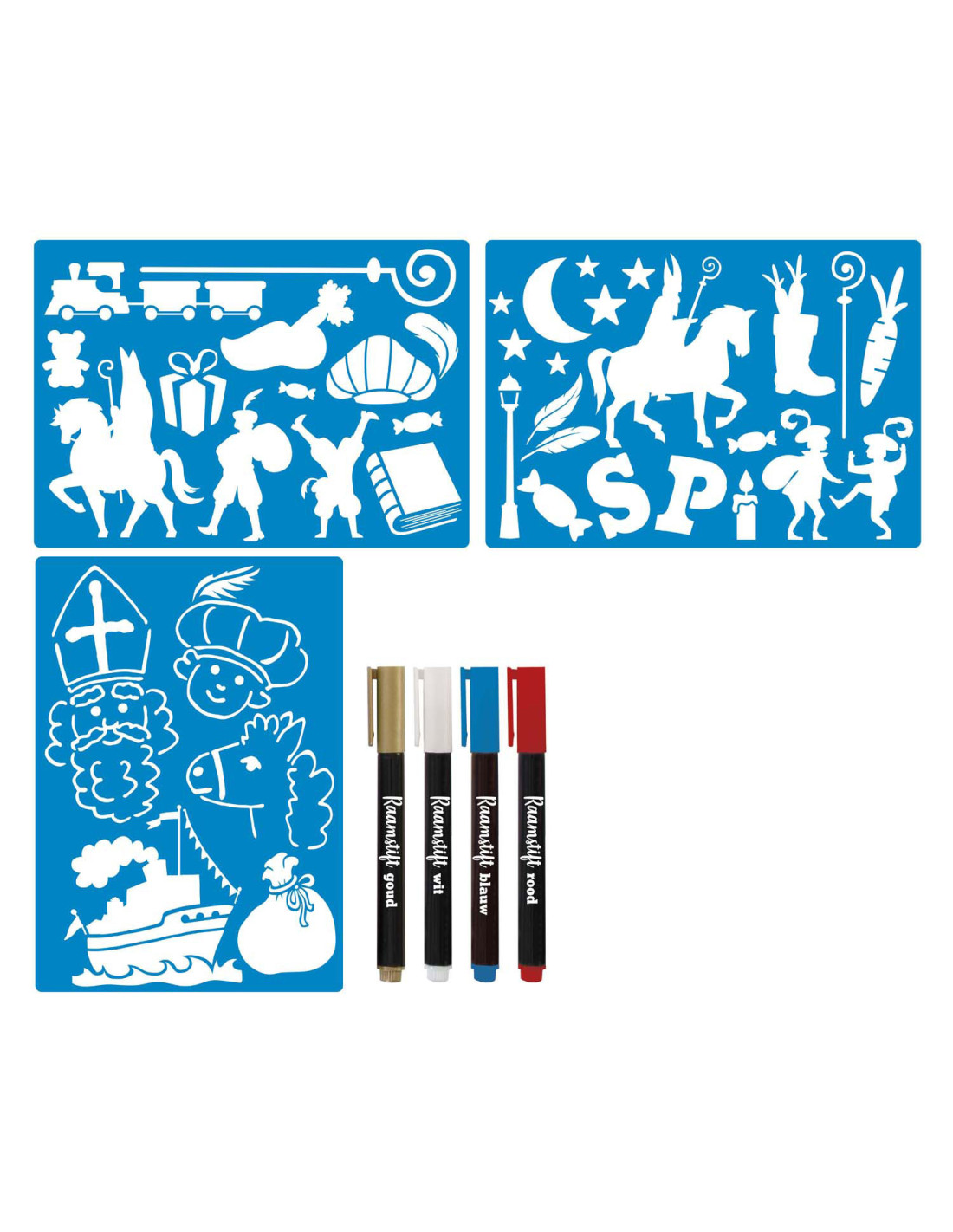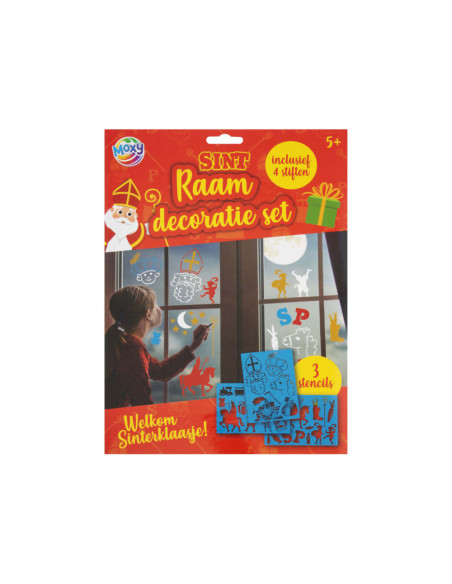 Sinterklaas raamdecoratie-set. Bevat 3 vellen met sjablonen en 4 stiften. Geschikt voor kinderen vanaf 5 jaar.
