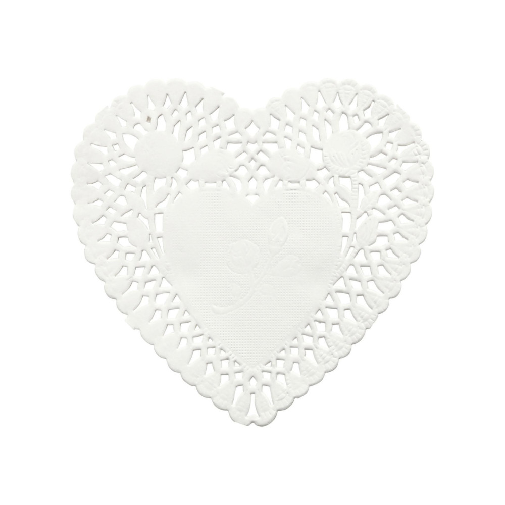Deze hartvormige papieren cakeservetten/onderleggers zijn perfect voor een romantische touch aan je tafeldecoratie. De fijne kantmotieven geven een elegante uitstraling en maken van jouw cupcakes of desserts echte blikvangers. De inhoud van de verpakking bevat 30 stuks, genoeg om een feestelijke gelegenheid te voorzien van de nodige aankleding.