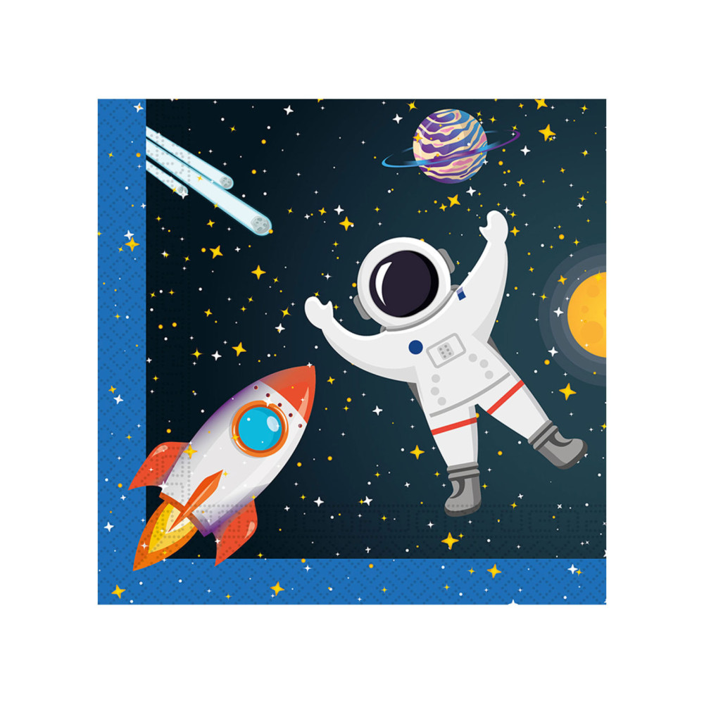 Set van 20 astronauten-/ruimtevaartservetten, 33x33 cm groot. Gemaakt van FSC-papier.