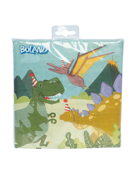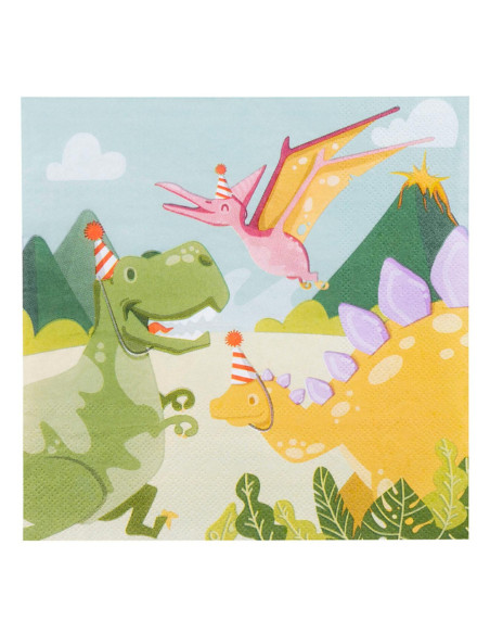 Set van 20 papieren servetten met het thema Dino party (33 x 33 cm).