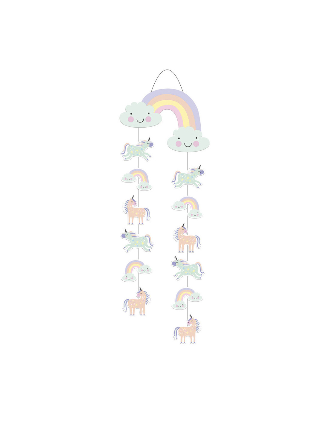 De sierlijke eenhoorns en dedetails maken van deze slingers een betoverende toevoeging aan jouw feestdecor. Maak jouw feest compleet en laat jouw gasten genieten van de feestelijke ambiance die deze eenhoorn hangdecoratie met zich meebrengt.