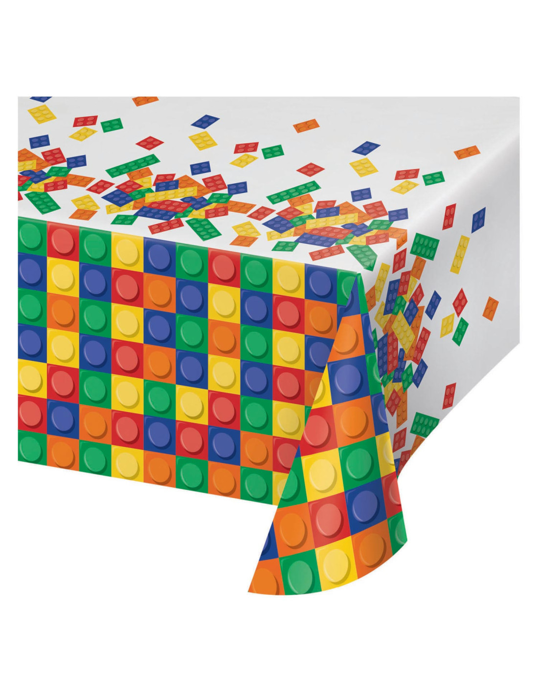 Plastic tafelkleed block party. Het kleed heeft een uitgevouwen maat van 137 bij 259 cm.